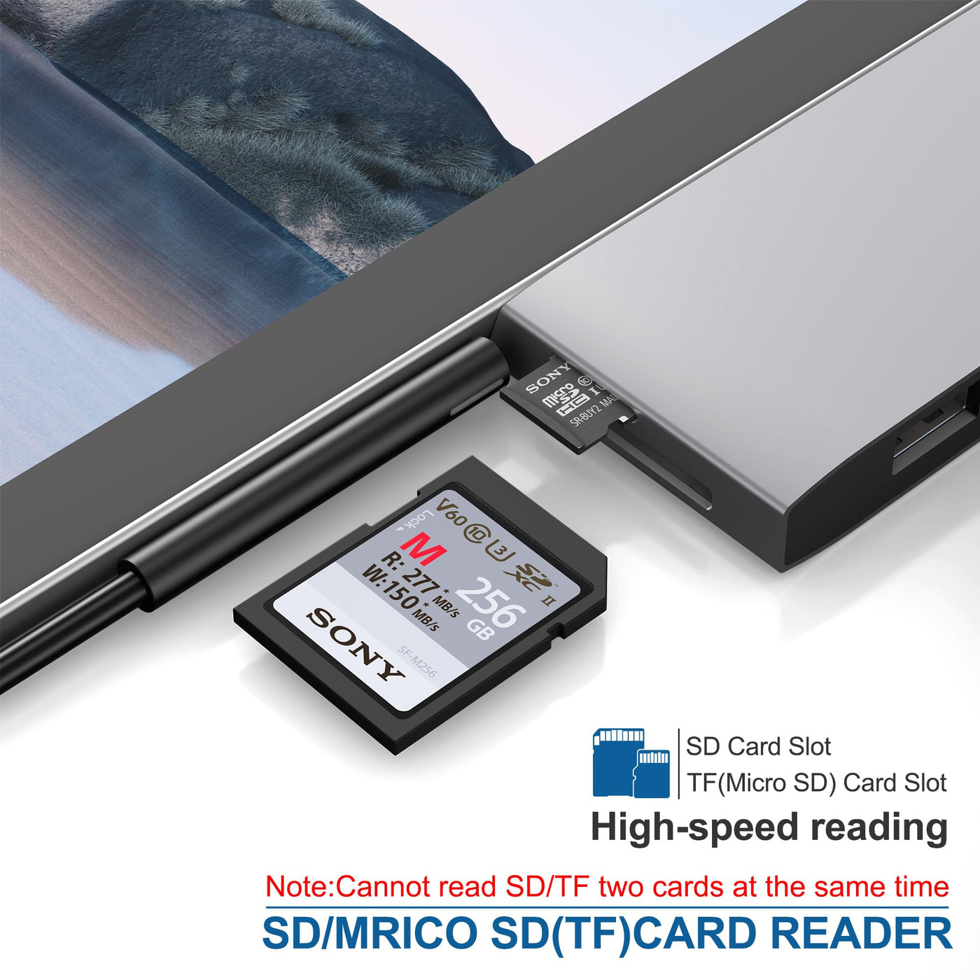 Usb 3.0 Surface Pro 6/Pro 5/Pro 4 Usb Hub Docking Station 4K Hdmi Hub Adapter, Sd & Tf/Micro Sd Memory Card Reader, 4K@30Hz Hdmi
