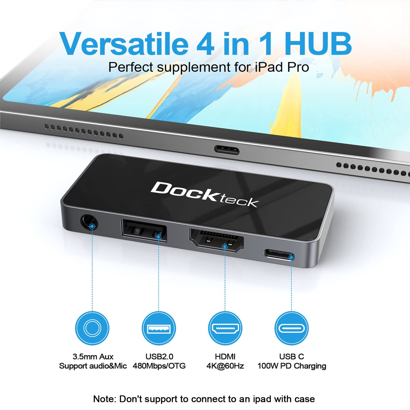 Usb C Hub Adapter For Ipad Pro 2021 2020 2018 11 12.9 / Ipad Air 4 10.9 Ipad Mini6 Dockteck 4 In 1 Ipad Pro Usb C Hub With 100W