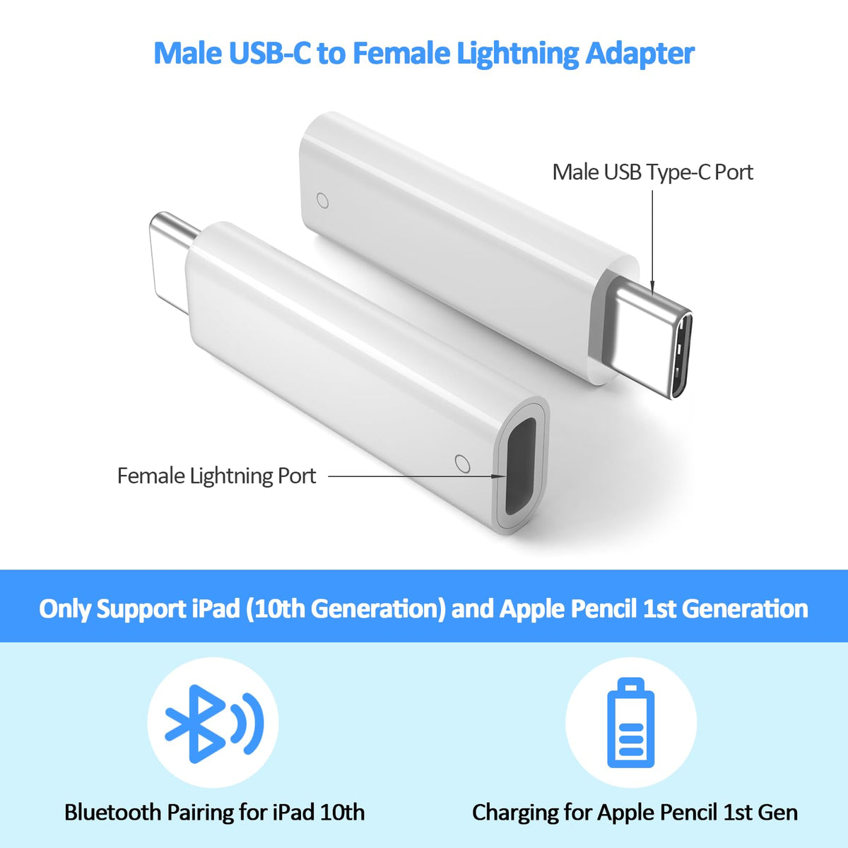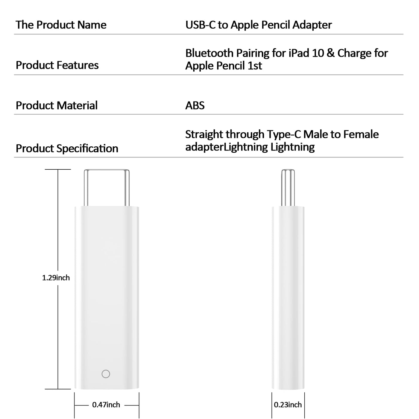 Usb-C To Pencil 1St Gen Adapter Charging Adapter For Apple Pencil 1St Generation Male Usb-C To Female Charging Adapters Bluetooth Pairing Pencil Charging Connector For Ipad 10Th Generation Male Usb-C To Female Lightning Bluetooth Adapter: The Charging Adapter Is Specially Designed For Apple Pencil 1St Generation And Ipad 10Th Generation. Pairing Bluetooth For Ipad 10Th Generation: After Plug Your Ipencil 1St Gen Into Your Ipad 10 Th, It Will Pop Out ''Bluetooth Pairing Request'', Click On Pairing Then You Will Connect Your Pencil To Ipad 10Th Successfully. No Need Charging Cable: Support Multiple Ways To Charge Your Ipencil 1St Gen Without Charging Cable. Provide Stable And Fast Charging For Apple Pencil 1St Gen. Perfect To Place It On Your Bags, Pockets, Cases And So On. Perfect Adapter: It'S Made Of Abs Material, Which Is Anti-Scrape And Wear-Resisting. Portable Size And Light Weight Of This Charging Adapter, Bring You More Convenience. Note: Please Make Sure That Your Device Is For Apple Pencil 1St And Ipad 10Th Generation.