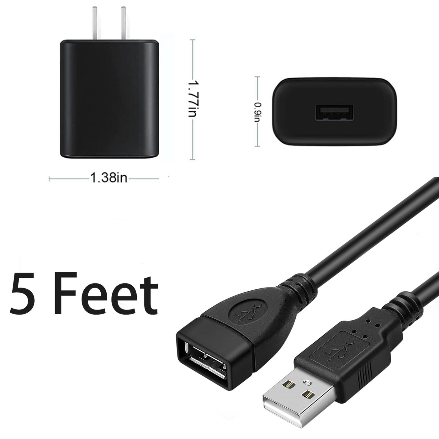 Q: What is the length of the USB extension cable included with the charger?A: The charger comes with a 3.3FT (1M) USB Type-A male to female extension cable, allowing for flexible positioning while charging.