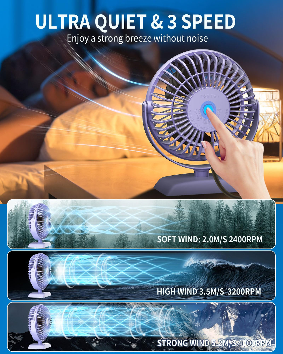 ?Sleek And Modern Design? Take Your Style To The Next Level With Compact And Unique Modern Look. The Lightweight And Space-Saving Design Make It Easy To Carry Around, Making It Perfect For Home, Office, Desktop, Car, Camping, Travel Use, Or As A Gift. ?Whisper-Quiet Operation? Featuring A Brush-Less Motor, Our Mini Fan Produces Minimal Noise, Making It A Great Companion For Studying, Sleeping, Or Working. The Fans Sound Is Lower Than 50Db At The High Speed, And The Switch Indicator Will Auto Turn Off After 30 Seconds, Providing A Comfortable And Peaceful Environment For Everyone. ?3-Speed Adjustable? This Small Desk Fan Has Three Speed Levels To Choose From, Providing The Right Amount Of Airflow To Cool You Down. You Can Easily Select The Appropriate Fan Speed By Pressing The Power Button Repeatedly. It Also Features A Self-Checking Function That Runs For 2 Seconds To Check During Excessive Power Flow. ?High Compatibility Usb-Powered? Our Desk Fan Comes With A Long 3.7Ft Usb Cable That Is Compatible With All Usb Ports Present On Your Computer, Wall Charger, And Other Electronic Devices. Power This Fan Up With Ease, Hassle-Free! (Note: This Fan Has No Battery) ?Flexible Head With Easy Cleaning? With Our Fan'S Flexible Head Design, You Can Adjust The Angle Of Airflow To Suit Your Needs. The Front Cover Can Also Be Easily Removed For Cleaning Purposes, So You Can Maintain Your Fan'S Cleanliness With Ease.