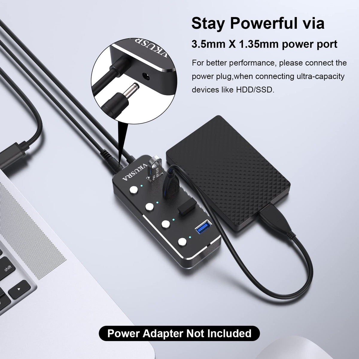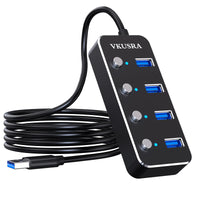Usb Hub,Vkusra 4 Port Usb 3.0 Hub Splitter With 4Ft Usb Long Cable And Individual Led On/Off Switch,Usb Port Expander For Laptop Pc