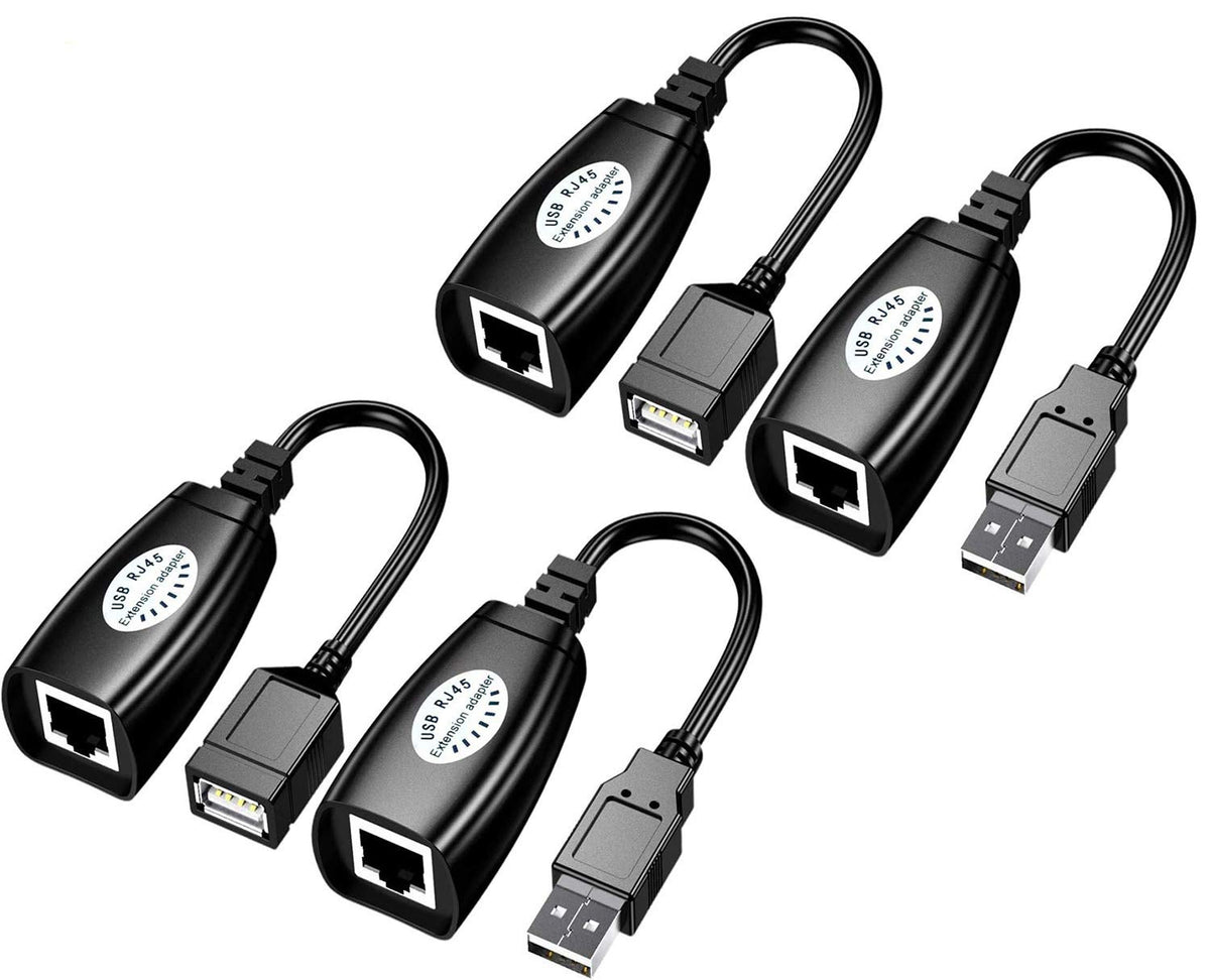 Ideal For Use With Usb Cameras, Printers, Web Cams, Keyboardmouse Extensions And Any Other Usb Devices What Youll Get Usb To Rj45 Utp Extender Adapter X 2 Pairs 1Allows You To Connect Your Usb Devices To Your Computer At A Distance Of Up To 150Ft 2 Self-Powered So No External Power Source Is Required 3 Uses Standard Cat5Cat5Ecat6 Patch Cord (Not Included) 4 Base Bonnectors: Usb Type A Mmle Rj45 Female 5 Remote Connectors :Usb Type A Female ,Rj45 Female 6 Color: Black Please Note: The Maximum Distance Between This Usb Device And The Computer Can Reach 150 Feet, But More Than 30 Feet Need To Be Completed With High-Quality Network Cable Otherwise It Will Lead To Instability Ordinary Network Cable Under 30 Feet Is Enough
