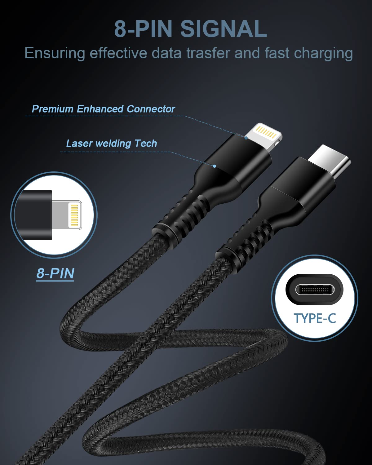 Haoano USB Type C Lightning Cable - 6FT Nylon, Apple Certified, Fast Charging for iPhone 14/13/12/11/SE/10/XR/XS/8 Plus