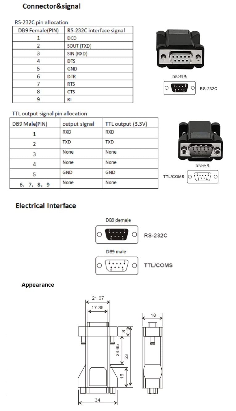 In Order To Facilitate Data Communication Between External Devices Or Intelligent Instruments Equipped With Different Standard Serial Interfaces, It Is Necessary To Convert The Standard Serial Interfaces. Ut-210T Interface Converter Can Convert The Rs-232C Serial Interface Data Transmission (Txd) And Data Reception (Rxd) Signals Into Ttl/Coms Compatible Level, And The Converted Ttl Level Is 0-3.3V, No External Power Supply Is Required. Driven By A Unique ''Rs-232 Charge Pump'', Power Can Be Obtained Without Initializing The Rs-232 Serial Port. It Has Zero-Delay Automatic Sending And Receiving Conversion Inside, And The Unique I/O Circuit Automatically Controls The Data Flow Direction. Without Any Handshaking Signals (Such As Rts, Dtr, Etc.), It Ensures That Programs Written In Rs-232 In Full-Duplex Mode Can Run In Ttl Mode Without Modification, Ensuring That It Is Suitable For Existing Operating Software And Interface Hardware. Converter Transmission Rate 300-115.2Kbps.