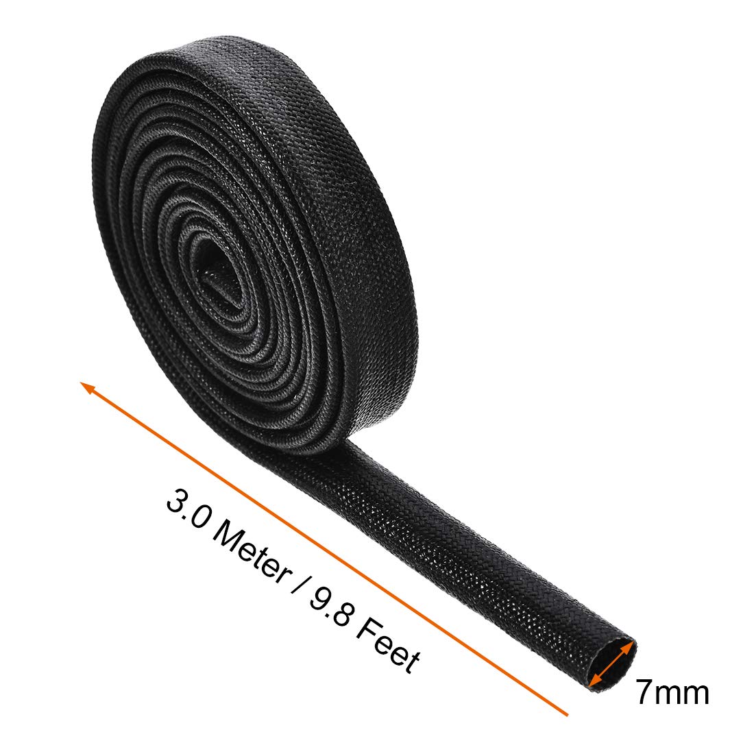 Q: How long is the uxcell Heat Shield Sleeve and what is its inner diameter?A: The uxcell Heat Shield Sleeve measures 3.0 meters (9.8 feet) in length and has an inner diameter of 7mm, making it versatile for various applications.