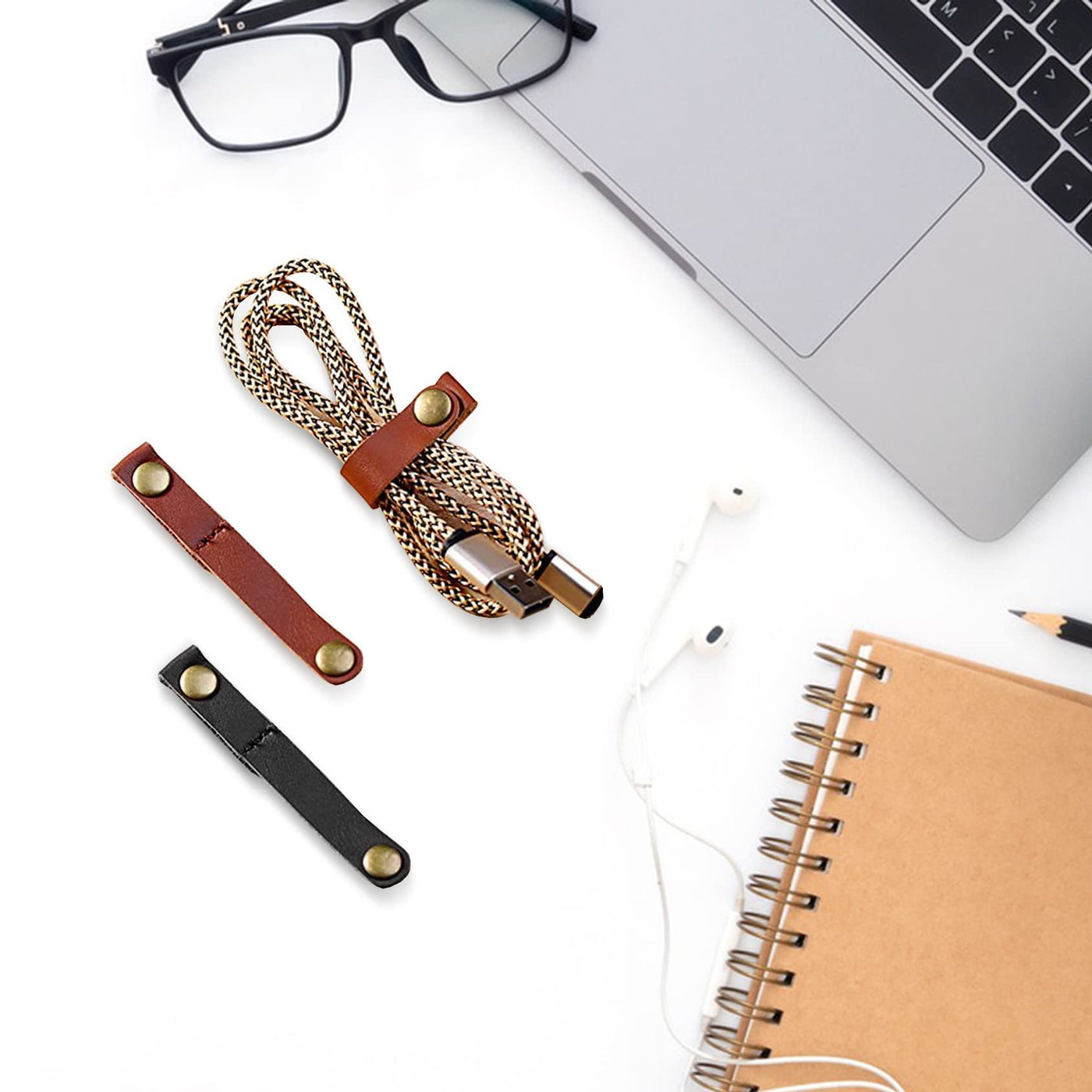 Viaky 24 Pack Leather Cord Organizer Cable Straps, Portable Headphone Usb Cables Keeper Management Ties For Car Office Home (2 S