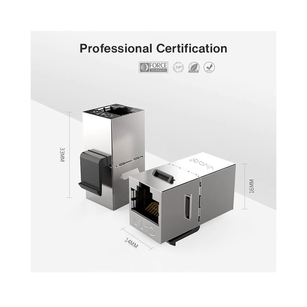 Q: What is the installation process for the VIVOCH Cat7 Keystone Coupler?A: The keystone design allows for easy snap-in installation into standard data wall plates, making the setup process quick and straightforward.