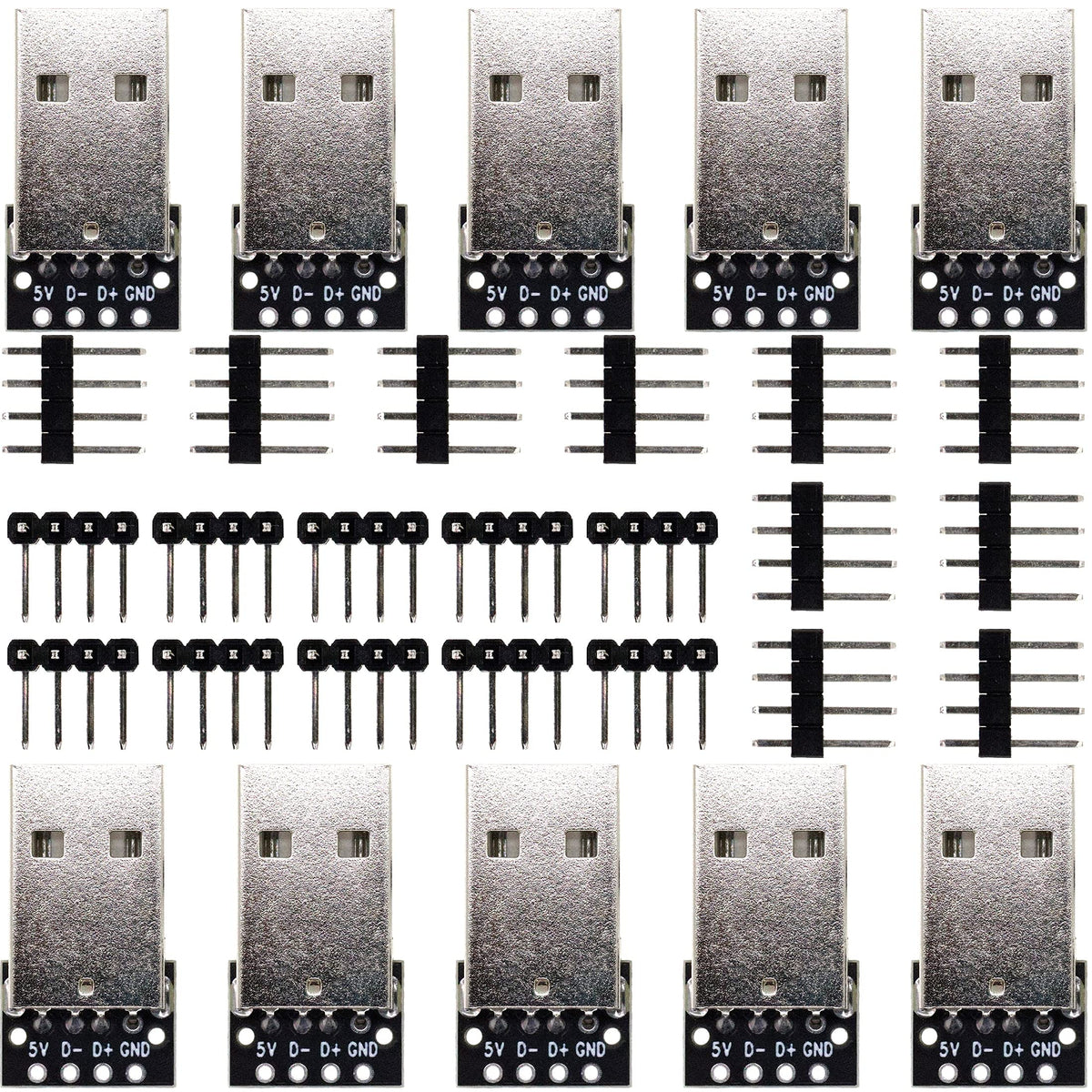 Q: What is included in the package of the whiteeeen USB Type A Male Breakout Board Adapter?A: The package includes 10 pieces of the USB Type A Male Breakout Board Adapter, providing ample quantity for multiple projects or use in bulk applications.