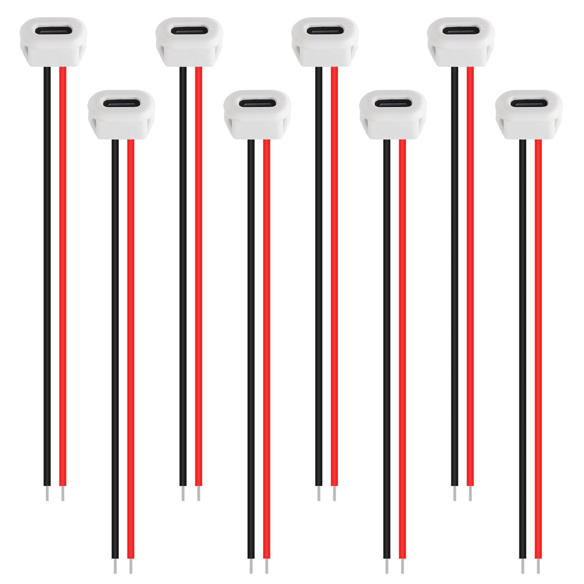 Xiitia 8Pcs Type C Female Chassis Waterproof 2P Solder Wire Type Usb C Pigtail Cable Extension Power Cable Usb C Plug To 2 Pin B
