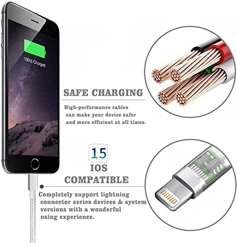 Ximytec Iphone Charger Cable [Mfi Certified] 3Pack 10Ft Nylon Braided High Speed Usb Charging Cord Compatible With Iphone 12/11/Xs/Xr/X/8/7/6/5/Ipad Silvergray