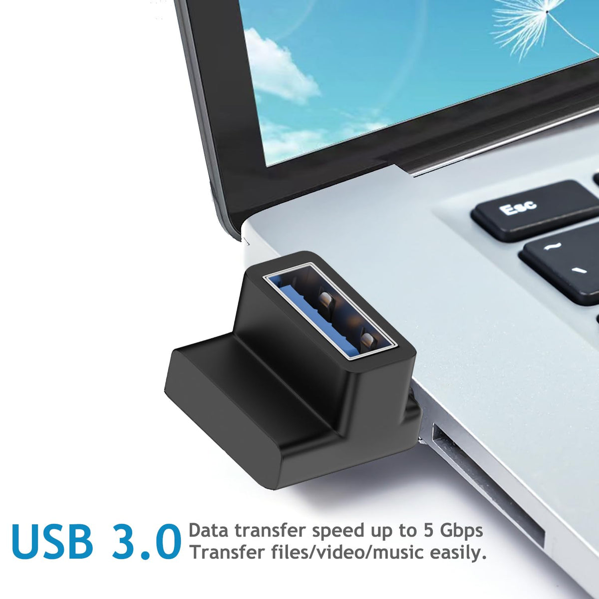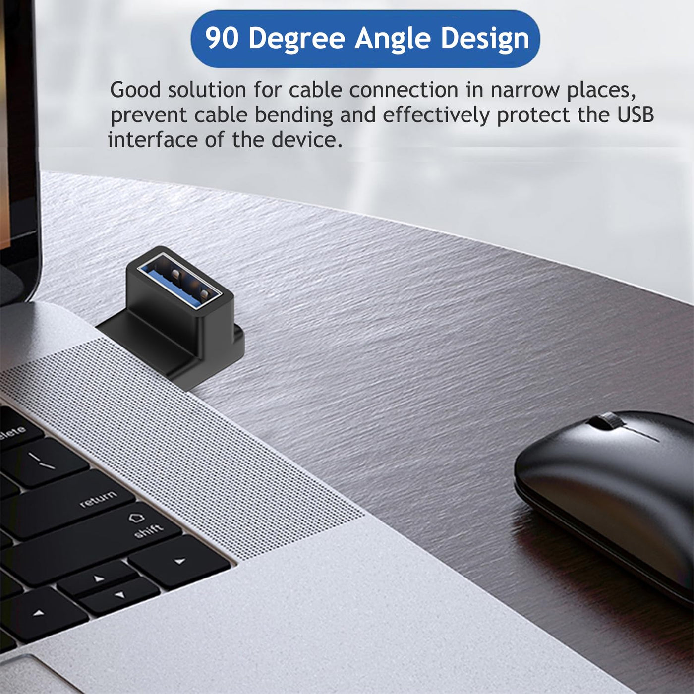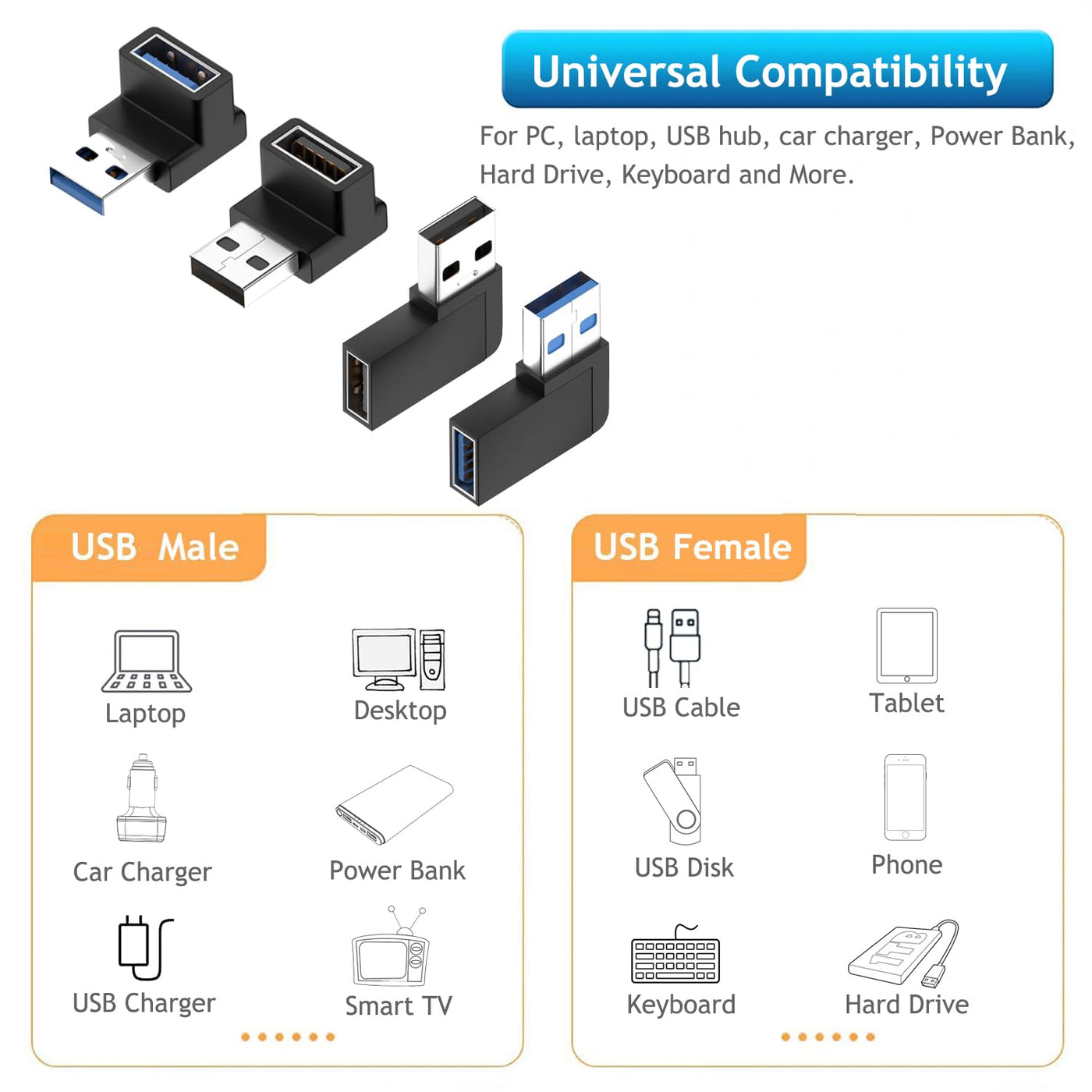 ?90 Degree Angle Innovative Design?Up And Down Angle, Left And Right Angle Design, This Usb 3.0 Adapter Allows The Cable To Have A Suitable Extension Direction, Which Can Avoid The Wear Of The Cable And The Input Port Of The Device. Good Solution For Cable Connection In Narrow Places, Prevent Cable Bending And Prolong The Cable'S Service Life. | ?5Gbps Data Transfer & Fast Charging?By Supporting Usb 3.0, This Right Angle Usb Adapter Can Offer Data Transfer Speeds Of Up To 5 Gbps. Transfers Movies, Music And More In Just Seconds. What'S More, It Supports The Maximum 5V/3A, 15W Power Delivery, Providing Your Device With The Fastest Possible Charging. | ?Plug And Play?This Adapter Does Not Require Additional Drivers And Software. Each 90 Degree Usb Adapter Is Tested Manually To Ensure That It Can Work Perfectly. | ?Versatility Of Each One?Four Types Of Angles, Each Adapter Is Different Direction, Giving You Just The Angles You Need For Various Usb Situations. Ultra Thin Size, Lightweight Adapter Easy To Carry Out. With Its Compact Design, This Usb Adapter Is Easy To Use In Tight Spaces Like Cars,Corners,Desk Edges Etc. | ?Wide Compatibility?Compatible With Pc, Laptop, Usb Hub, Car Charger, Power Bank, Hard Drive, Keyboard And More.