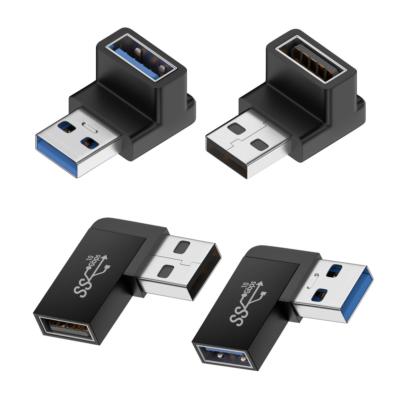 Xsusmdom 90 Degree Usb 3.0 Male To Female Adapter, (4 Pack) Up And Down & Left And Right Angle Usb A Extender Connector For Pc,