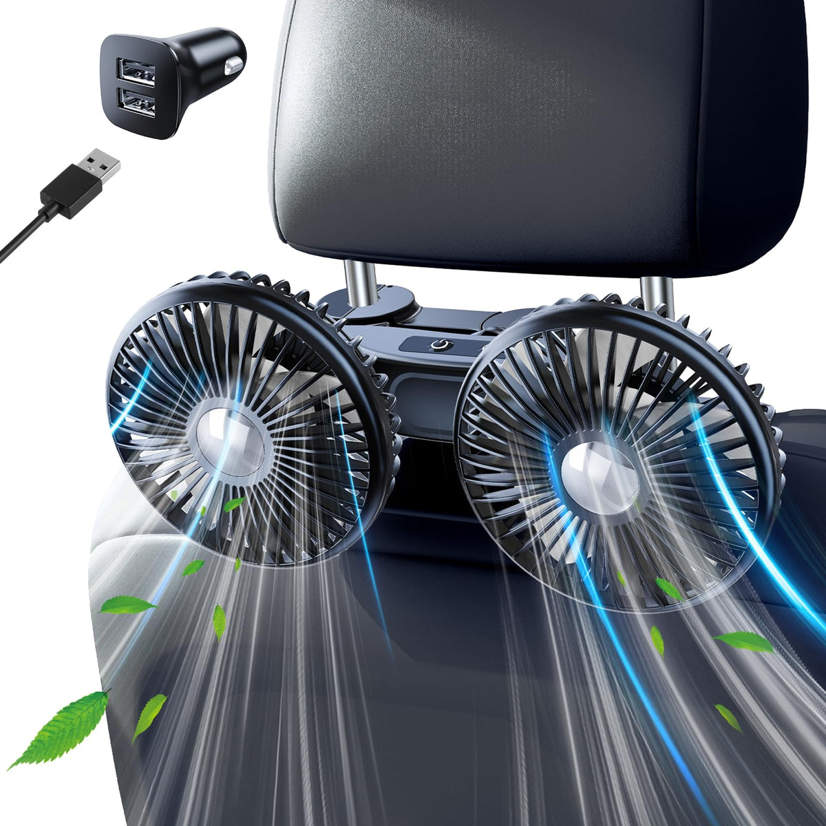 Xuenair Car Fan,120�*2+360�*2+270� Adjustable Car Backseat Fan, Car Seat Fan For Baby Rear Facing 15Db Quiet Running, Usb Fan For Car Seat Baby, Car Cooling Fan With Dual Usb A Car Charger (A Usb)