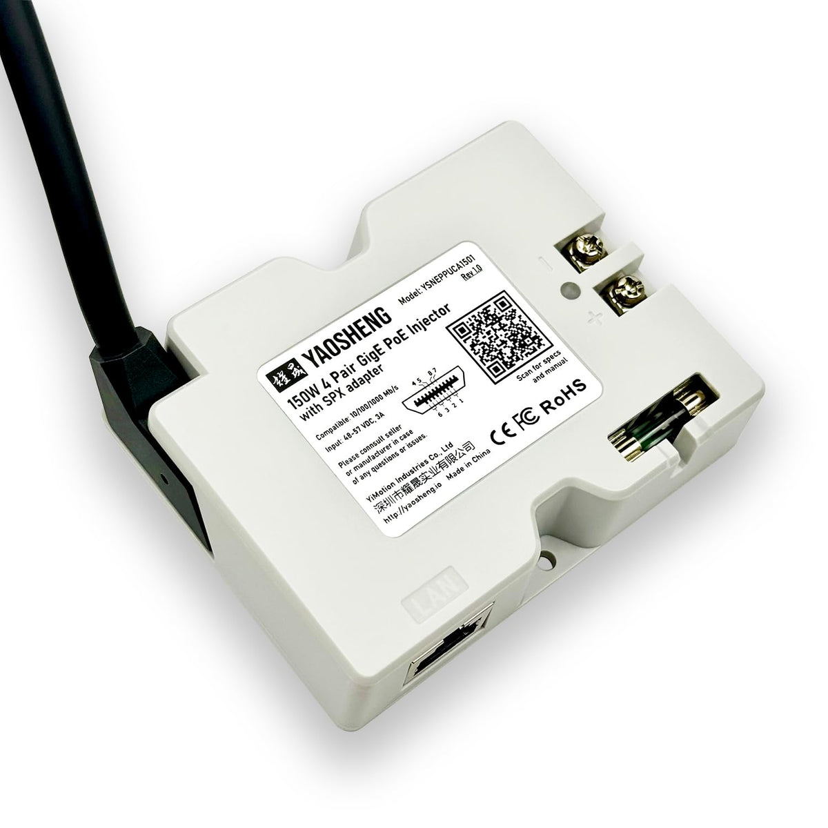 Yaosheng 150W 2 In 1 Poe Injector + Spx Cable Adapter For Residential Starlink