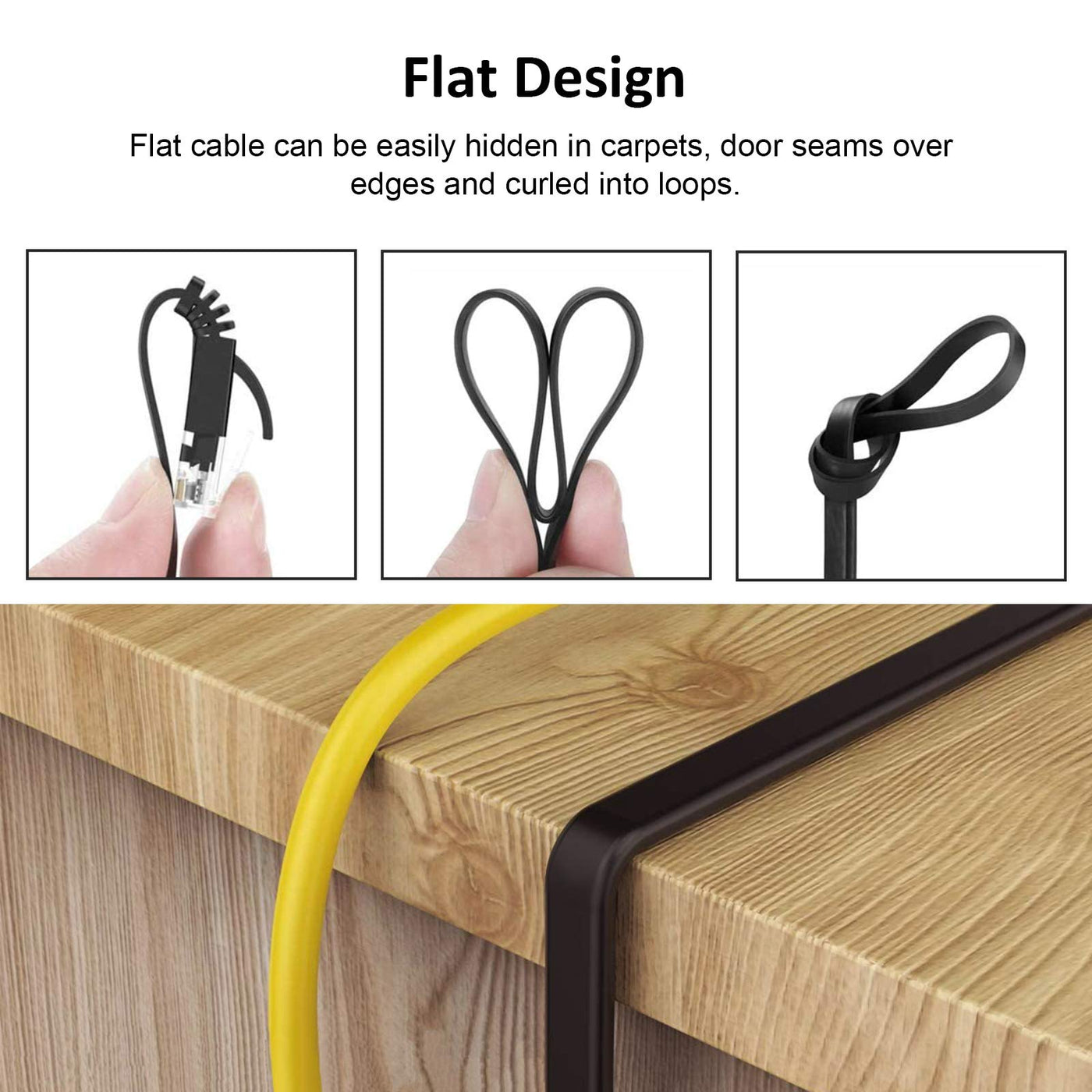 ?High Speed Transmission?Cat6 Cable With High Bandwidth Of Up To 350 Mhz And 1Gbps Ensure High-Speed Data Transfer For Server Applications, Cloud Storage, Video Streaming And Playing Games Without Worrying About Cables Causing A Mess. Supports: Gigabit 1000 Base-T; 100 Base-T; 10 Base-T. | ?High Performance Construction?Made Of 4 32Awg Shielded Twisted Pair (Stp) Of Pure Copper Wires With Pin Gold Plated Rj45 Connector Which Provide Provide Excellent Conductivity For Accurate High-Speed Transmission And Great Resistance To Crosstalk, Noise, Degrade The Signal Interference. | ?Flexible And Durable?The Flat Design Of 0.06Inch Thickness Helps Avoid Tangled Cords And Saves Space.This Flat Cat6 Ethernet Cable Which Endures Over 10,000 Bending Tests Are Super Flexible And Durable Enough To Be Run Under The Carpet Or Bent Through Corners Or Into Desks. | ?Universal Compatibility?This High-Speed Cat6 Ethernet Cable Works Well With All Rj45 Connector Devices. Compatible With Pcs, Computer Servers, Printers, Routers, Switch Boxes, Network Media Players And More. | ?Buy With Confidence? Each Cable Has Passed Cat6 Channel Test To Provides You With Long Lasting Confidence In The Quality Of Your Purchase. Free Replacement And Unconditional 90-Day Full Refund, Our Friendly Customer Service Are Always Standing By To Help.