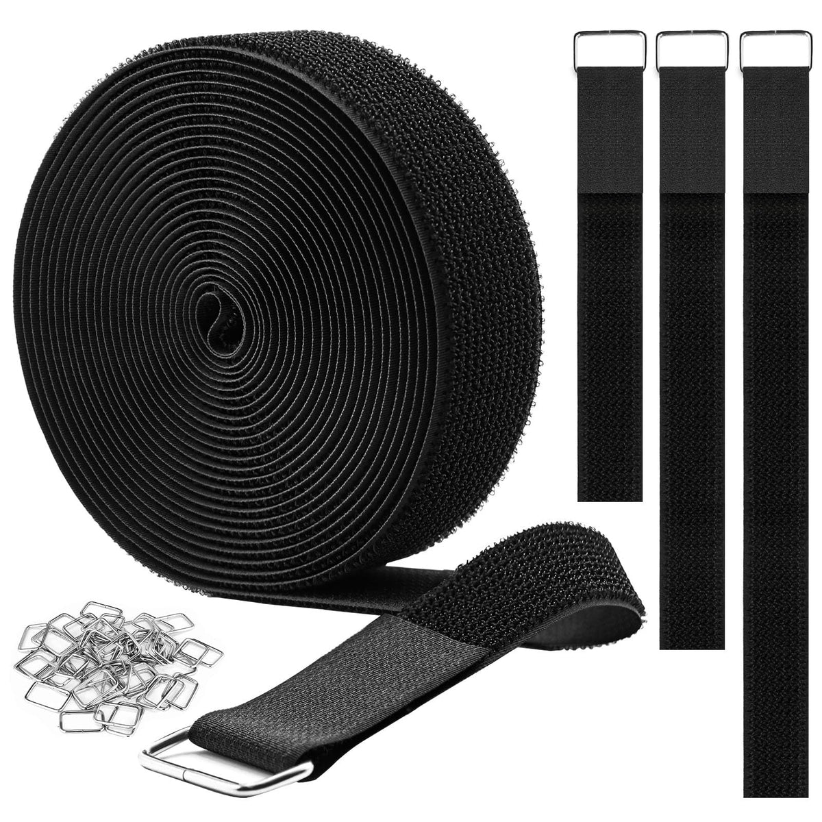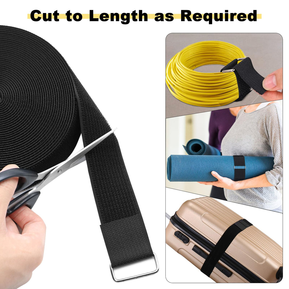 Ymcrlux 1.5''X16Ft Hook And Loop Straps With 15 Metal Buckles, Adjustable Fastening Cable Straps, Cut To Length Cinch Strap, Reu