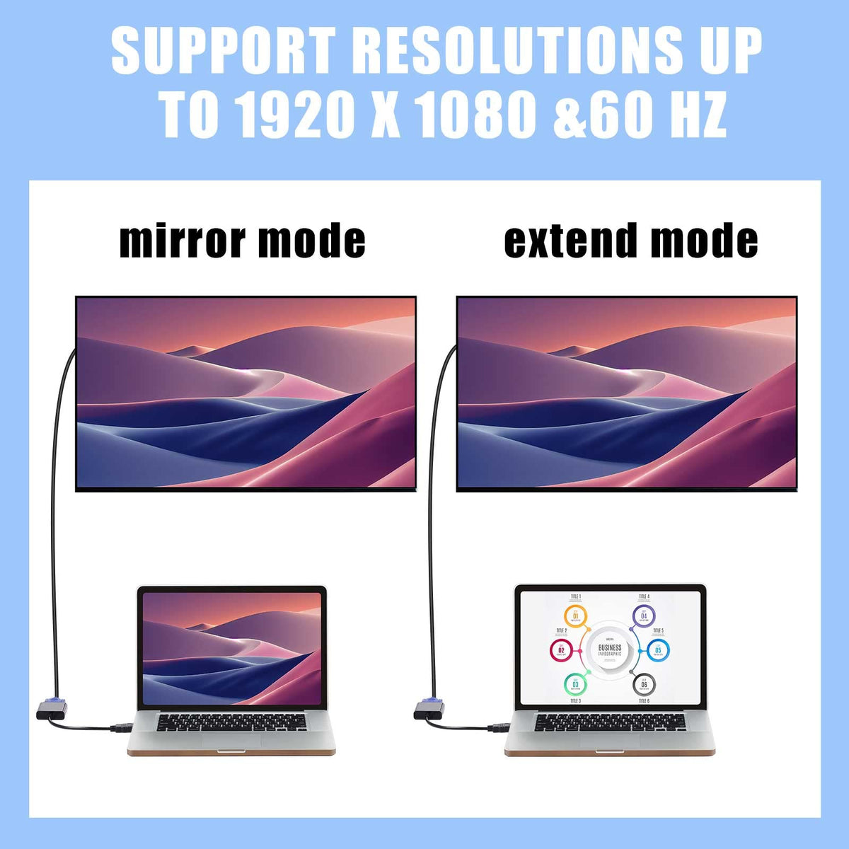 Feature: Hdmi To Vga Converter Bulk: The Package Includes 20 Pack Hdmi To Vga Adapter Which Can Well Make The Hdmi Signal Source To Vga Interface Input Device. The Hdmi (Male) Can Connect Output Devices Such As Computers, Laptops, Tv Boxes, Game Consoles, And So On. The Vga (Female) Can Connect Input Devices Such As Tvs, Monitors, Projectors, Etc. Basic Information: Quantity: 20 Size: Line Length 6.3 Inch/ 16 Cm, Overall Length 9.8 Inch/ 25 Cm Color: Black Material: Oxygen Free Copper Core And Abs Hdmi Video Input Format: 480I/576I/480P/576P/720P/1080I/1080P/60Hz Vga Output Resolution: 640 X 480, 800 X 600, 1024 X 768, 1280 X 720, 1280 X 768, 1280 X 800, 1280 X 1024, 1360 X 768, 1600 X 1200, 1920 X 1080. Package Include: 20 X Hdmi To Vga Adapter Notes: They Are Mono-Directional Adapters, Only From Hdmi To Vga Manual Measurement, There May Be Slight Differences In Size. Due To The Screen Display, The Color Of The Item May Differ Slightly From The Picture. The Mention Of Brand Names And Any Related Models Above Is Only For Purposes Of Demonstrating Compatibility.