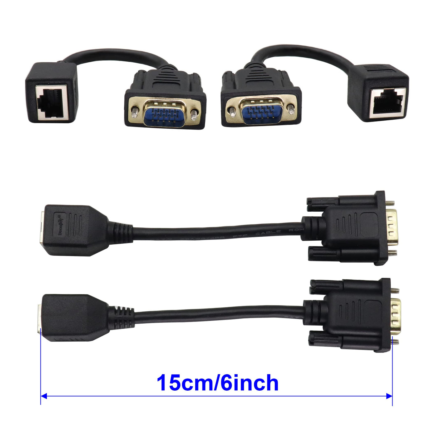 'Vga To Rj45 Cable ,Vga 15-Pin Port Male To Rj45 Female Cat5/6 Ethernet Lan Console For Multimedia Video And Extend Transmission Distance Of Vga Devices(15Cm/6Inch,2Pcs) Product Instructions: 1.Vga Port, Which Expands Display Devices Through Network Cables 2. This Switch Cable Can Be Used To Switch To The Vga Serial Port. The Vga 15-Pin Serial Port Is Used To Connect A Host Computer Or Various Monitors. 3. The Network Cable Can Be Connected To The Network Cable Interface Of The Two Switch Cables Respectively. 4. The Product Transfer Cable Only Uses The Network Cable As The Transmission Medium, Instead Of Converting The Network Signal To The Vga Signal. Rj45 To Vga Patch Cable Male Or Female Connector Transmits Vga Signal Via Cable. This Adapter Will Allow You To Connect Your Pc, Laptop, Dvr, Media Center, Or Game Console Vga Video Port To Tv, Projector, Monitor With Available Vga Input For Ultimate Multimedia Experience. A Perfect Solution For Your Media Center Pc To Your Hdtv Features: Connectors: Vga Female / Rj45 Ethernet Port Female Allow Transmitting Signal Between Vga Video Ports For Distances Up To 66Ft (Approximately 20 Meters) Over Cat5, Cat6 Ethernet Cable (Cable Not Included) The Distance And Picture Quality Depends On Length Of The Cable, And The Resolution That You'D Like To Transmit. We Recommend You Use Cat6 Or Shield Cat5 For The Best Performance For Best Results Please Try To Stay Away From Major Power Lines Fluorescent And Neon Lights.( 12 Inches / 0.3 Meter ) Useful Tips: Make Sure That The Your Connection Works Over Regular Vga Cable For The Long Runs Try To Avoid Jack Connections, For The Best Result Use Straight Network Cat5 Cable Cat5 Cable May Be Affected By Close Proximity Of Fluorescent Fixtures. If Possible, Keep It At Least 2 Feet (0.5 Meters) Away You Can Not Use Switch, Router Or Hub To Transmit Video Using These Adapters You Can Use Vga Switches, Splitters, And Amplifiers