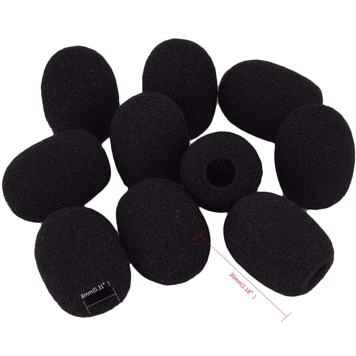 10 Piece Black L30Mm X D8Mm Mini Microphone Headset Windscreen Foam Mic Cover