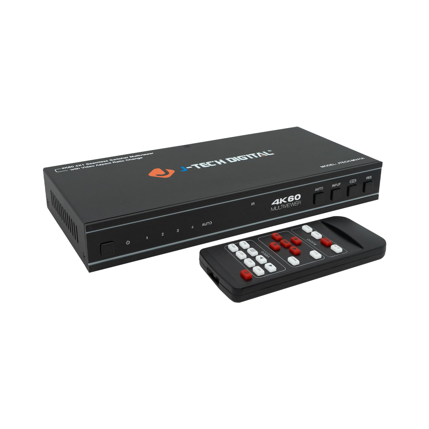 Description: The Jtech-Mv41A Is A 4 Input 1 Output Multi-Viewer &Amp; Seamless Switcher. Users Can Now Enjoy 4 Different Source Devices On A Single Display In 4K Resolution At 60Hz With No Delay. Supporting 8 Different Display Modes, Users Can Fit And Rearrange Their Hdmi Sources As Desired. Video Aspect Ratio Changing Ability Allows Users To Eliminate Any Stretched Out Or Out-Of-Frame Images, While Jtech-Mv41A&Rsquo;S Audio Extraction Feature Allows Users To Send Audio To Their External Sound Systems. The Jtech-Mv41A Is Perfect For Any Residential Or Commercial Install, And A Great Companion For Audio/Video Distribution. Features: 4 X Hdmi Inputs | 4 X Hdmi Outputs. Supports Up To 4K 60Hz Resolution With Seamless Switching 8 Different Display Modes, Including Pip, Pbp, Triple View, Quad View Etc. In Pip Mode, Switch The Location And The Size Of The In-Screen Picture. Choose From Top-Left, Top-Right, Bottom-Left, Bottom-Right Video Aspect Ratio Changing Ability Via Osd (Available In Certain Pip, Triple, &Amp; Quad Viewing Modes) Rearrange The Hdmi Sources On The Screen Via Osd Or The Pc Software. Easily Identify The Connected Source Device&Rsquo;S Location Via The On-Screen Labels Audio Extraction Feature Via Rca &Amp; Optical | Toggle Between Hdmi Inputs To Select Active Audio Digital Audio Format Such As Dolby Digital, Dd+, Dts, Dts-Hd, Up To 7.1 Audio Channel Supported Package Contents: (1) X Multi-Viewer Unit (1) X Remote Control (1) X User Manual (1) X 3-Pin Phoenix Connector (Male) (1) X Ir Wideband Receiver Cable (1) X 12V / 2.5A Power Adapter (2) X Mounting Ears 4 X Machine Screws (Km3*4)
