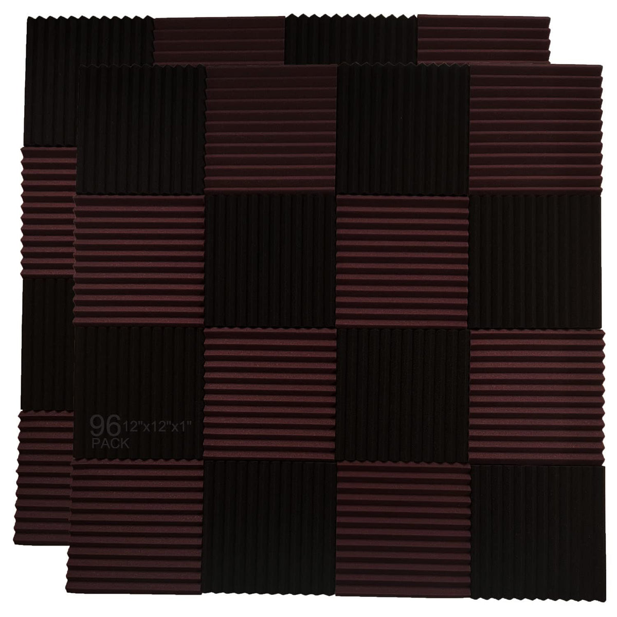 96 Pack Burgundy/Black Absorb The Echo Acoustic Foam Panel Wedge Studio Soundproofing Wall Tiles 12'' X 12'' X 1''