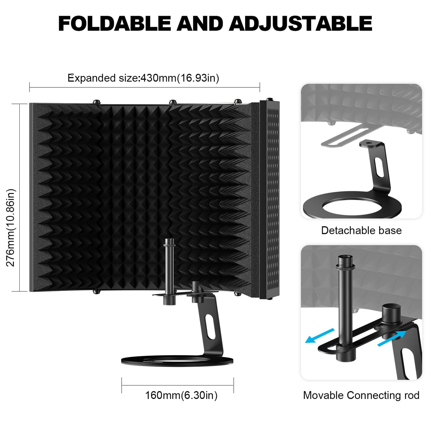 Aokeo Microphone Isolation Shield, Foldable Mic Shield With Triple Sound Insulation, Reflection Filter With 3/8 And 5/8 Mic Thre