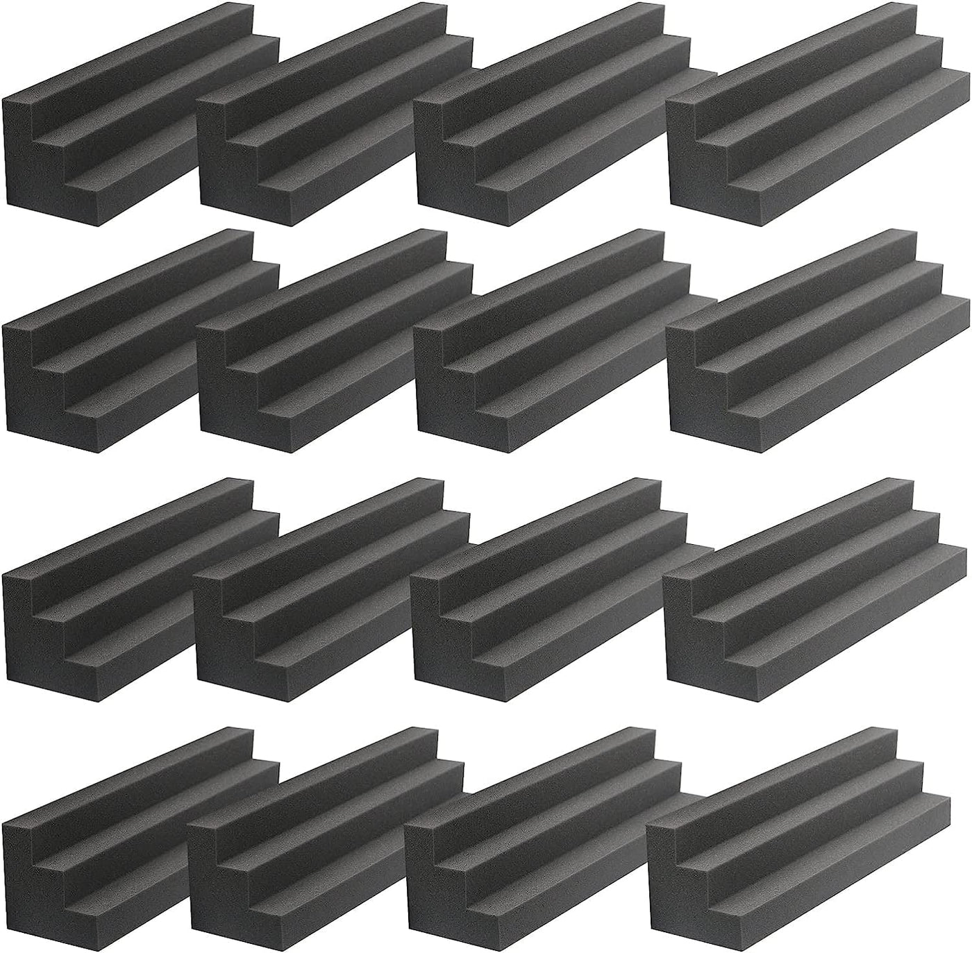 Bass Traps 16 Pack 12'' X 3'' X 3'' Corner Acoustic Foam Panels, Acoustic Bass Trap Corner Block, Sound Absorbing Foam For Studi