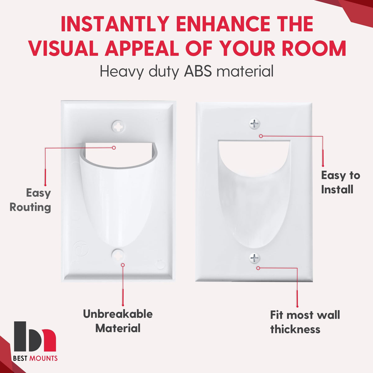 Bestmounts Behind Wall Cable Management, Conceal Cords On Wall Are The Perfect Solution To The Tv-Mounting Nightmare. Pass Low Voltage Cables Through Walls With A Clean And Simple Install By Using Our All-Inclusive Cable Plate Packs. Just Choose The Cable Plate Size That'S Appropriate For Your Application! Use The Easy Low Voltage Cable Plate To Install Low Voltage Cables Behind Your Flat Panel Tv, Your Amplifier Or Other Audio And Video Devices. The Wall Plate Can Be Installed Upright Or Upside Down. 1 Gang Low Voltage Mounting Bracket Is Durable, Flushed Mounted To The Wall Without Gap. Cutting-Out Template, Simplify The Positioning And Cutting Work. Eliminate The Guessing! Our Combo Packs Alleviate The Hassle Of Matching Cable Plates With Proper-Fitting Mounting Brackets. We Have Carefully Paired Our Cable Plates And Mounting Brackets To Ensure Proper Fitment And Functionality!