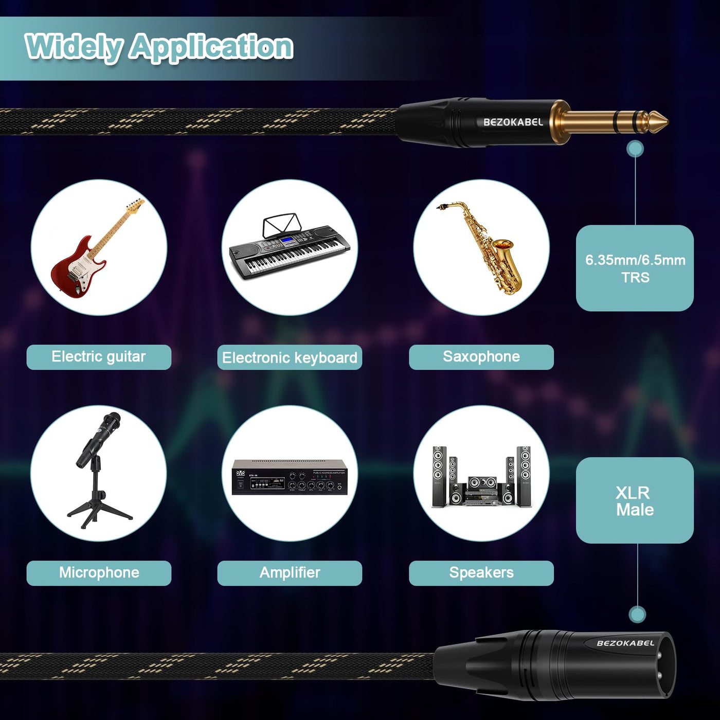 Bezokabel Balanced Xlr Male To 6.35Mm Trs Microphone Cable 1/4 Inch 6.35Mm/6.5Mm To Xlr Male Balanced Cable, 3Pin Xlr To Quarter Inch Mic Cable For Mixer, Guitar, Amp, Speakers Specifications: Connector A : Gold-Plated 6.35Mm Trs Male Connector B : Xlr 3Pin Male Jacket Material : Nylon Braided Cable Gauge : 24Awg The 1/4'' End Is Trs(Tip-Ring-Sleeve), The Xlr End Is Female, This Is A Balanced Cable. -24K Gold Plated Connectors And Double Shielding, Providing Optimal Signal Transfer And Corrosion Resistance. - 24Awg Oxygen-Free Copper (Ofc) For High Quality Sound. - Cotton Yarn Wrap To Reduce Noise. - Soft & Durable Nylon Braided Sleeve. Compatible: Work With Some Devices With Trs 6.35Mm Jack To Xlr Female, Such As Microphones, Guitar,Audio Sound Consoles, Pro Audio, Power Amplifier, Stereo System And More Package Contents: 2 X Male Xlr To 1/4 Cable