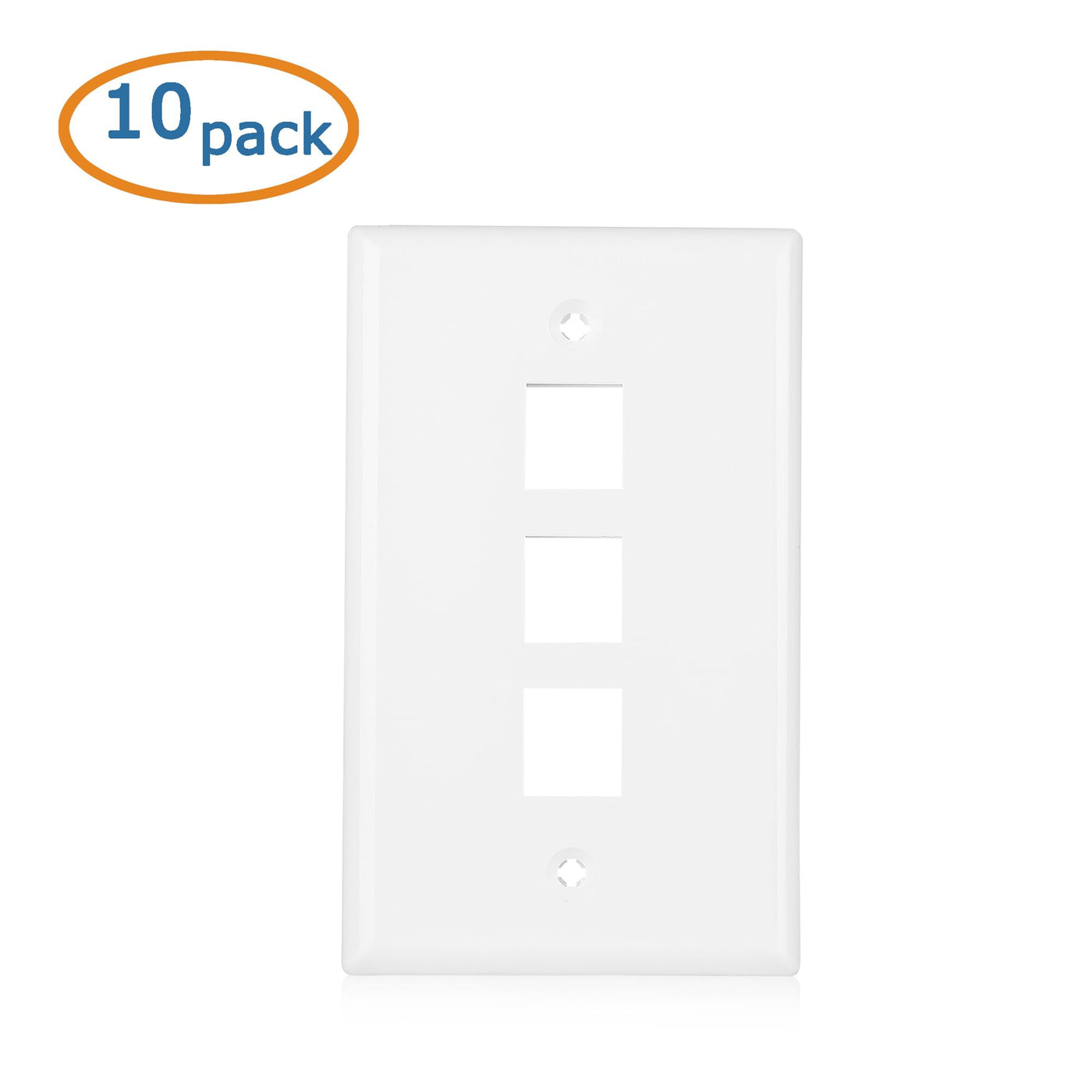 Cable Matters 10 Pack Low Profile 3 Port Keystone Jack Wall Plate, RJ45 Wall Plate for Keystone Jacks in White