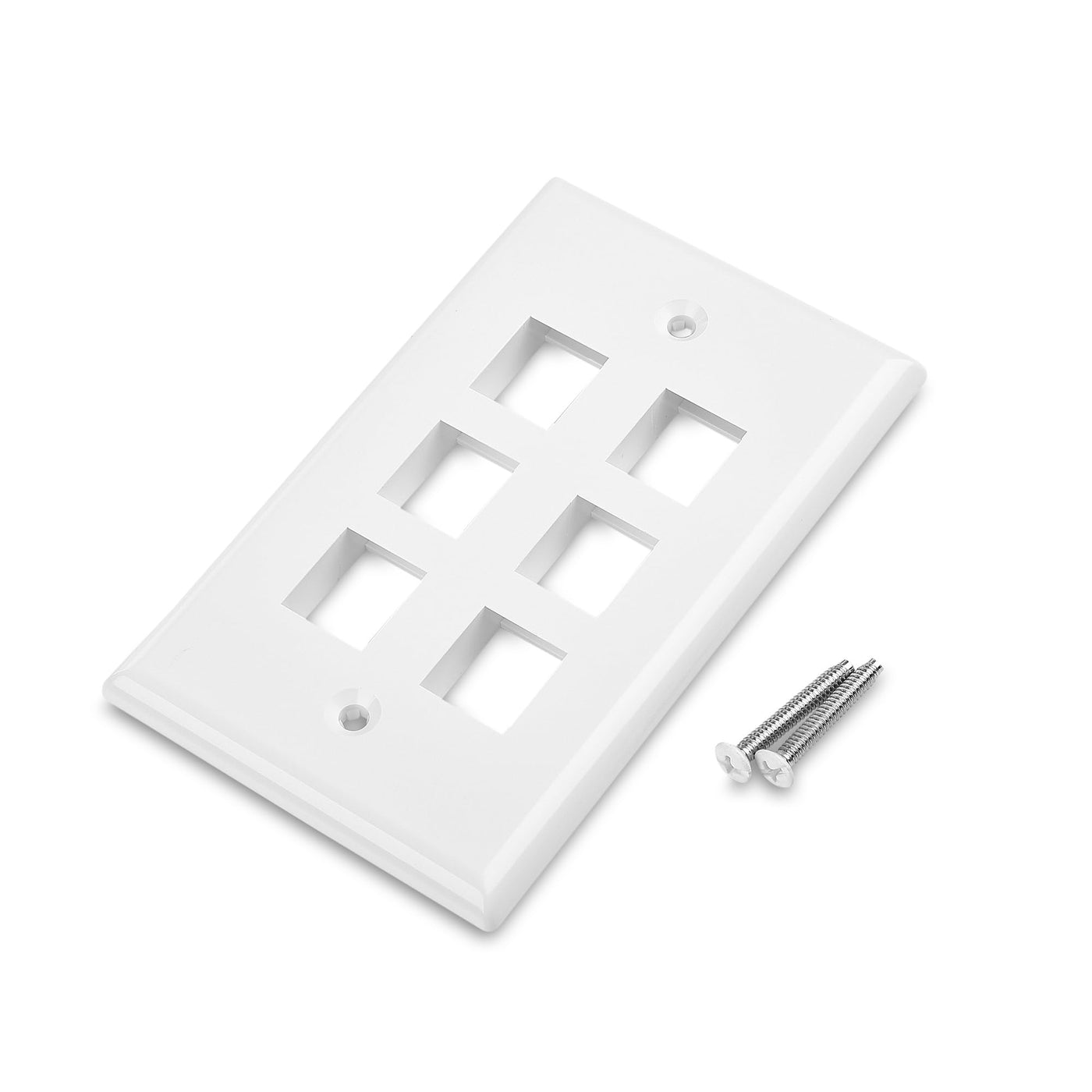 Cable Matters 10 Pack Low Profile 6 Port Keystone Jack Wall Plate, RJ45 Wall Plate for Keystone Jacks in White