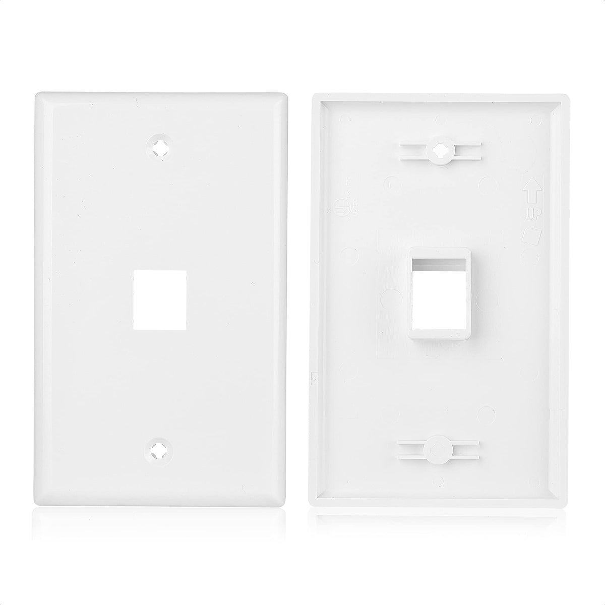 Cable Matters 2 Pack 1 Port Ethernet Wall Plate, Cat6 Wall Plate / Cat5 Ethernet Wall Outlet In White With Blue Ethernet Keyston