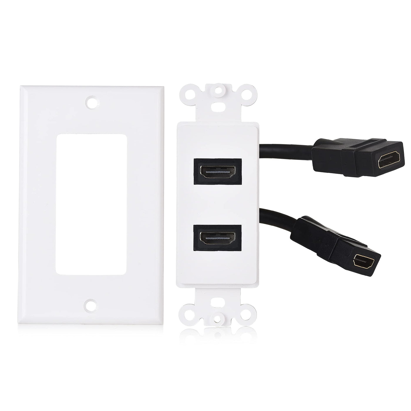 Cable Matters 2 Pack 2 Port HDMI Wall Plate in White (4K UHD, ARC, and Ethernet pass thru support)
