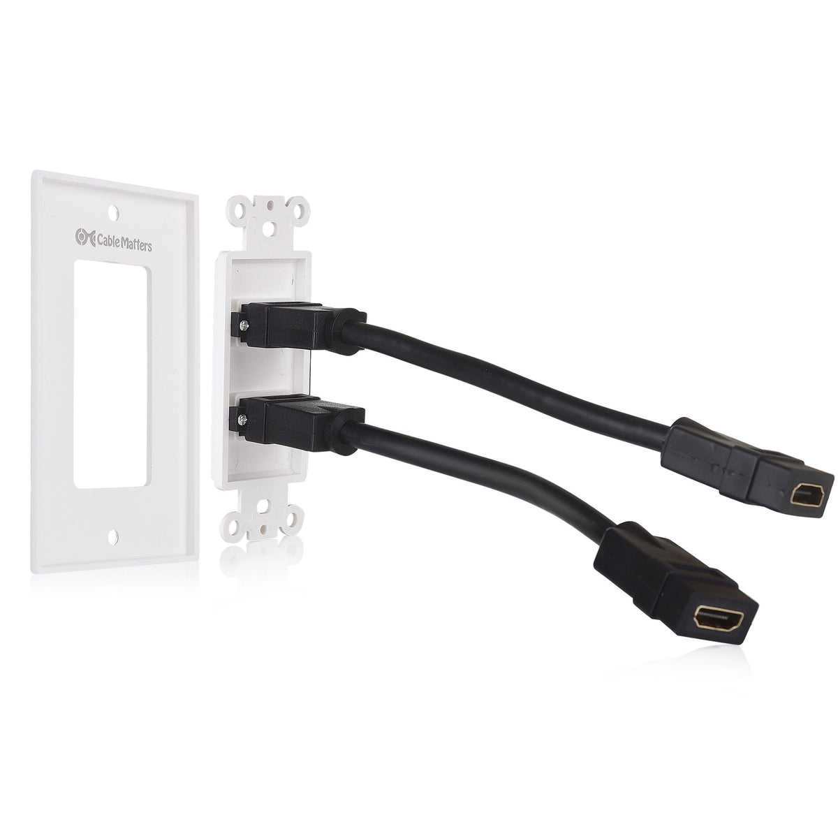 Wall-Mount HDMI Display Solution The Cable Matters 2-Port HDMI Wall Plate provides a clean and simple way to connect a wall-mounted UHD TV or a ceiling-mounted projector. Conceal the HDMI cables behind the wall instead of fastening it to the baseboard for a secure and professional-looking installation.