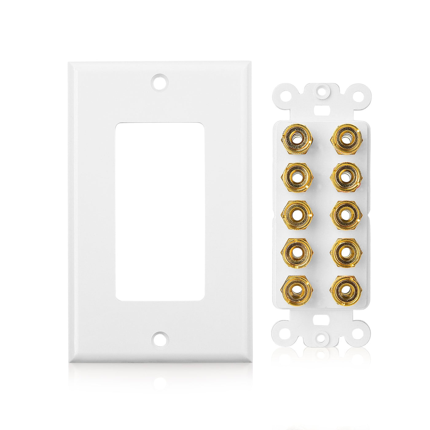 Cable Matters Speaker Wire Wall Plate (Speaker Wall Plate, Banana Plug Wall Plate) For 5 Speakers In White