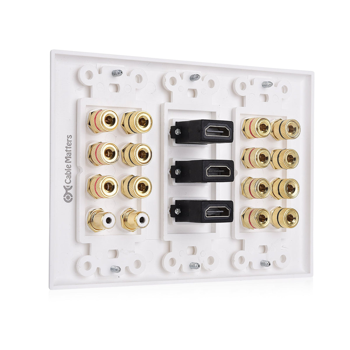 Cable Matters Triple Gang 7.2 Speaker Wall Plate with HDMI (Home Theater Wall Plate, Banana Plug Wall Plate), in White