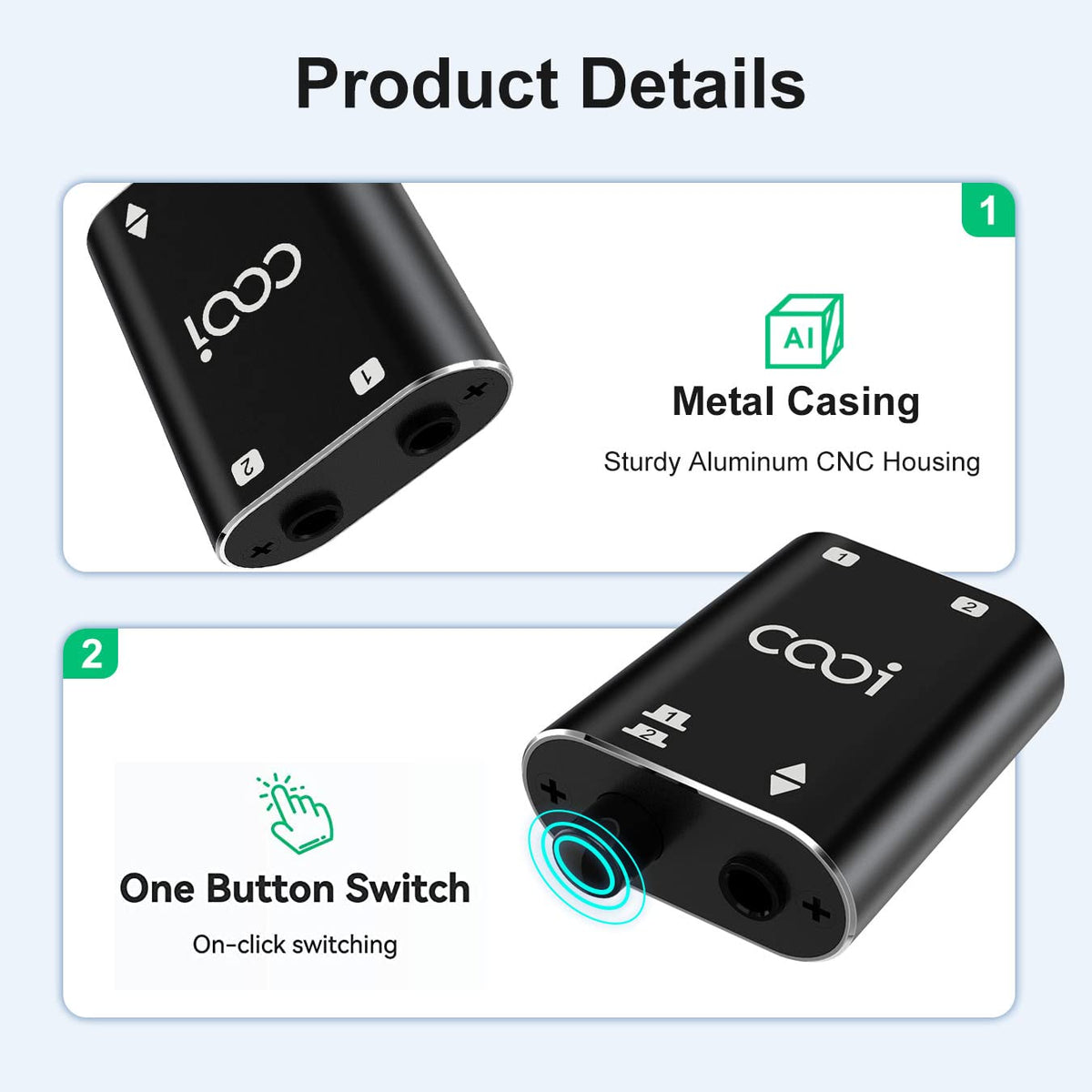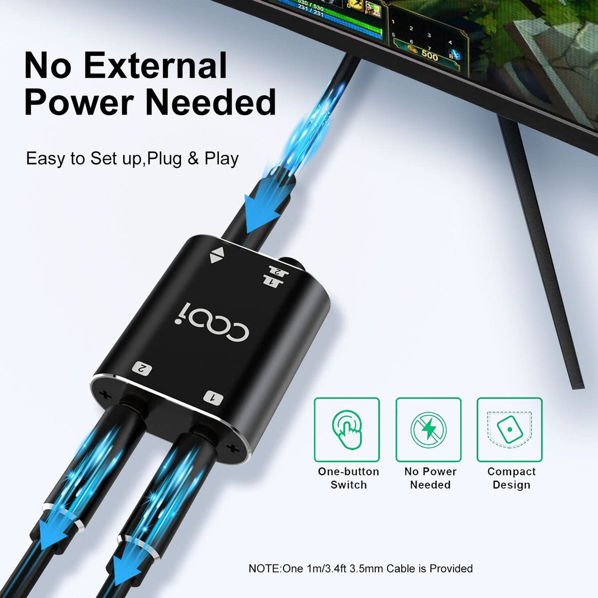 Cooidea 3.5Mm Stereo Audio Switcher(1 In 2 Out /2 In 1 Out) With 3.5Mm Audio Cable, 2 Ports Aux Audio Speaker Selector For Pc Ph