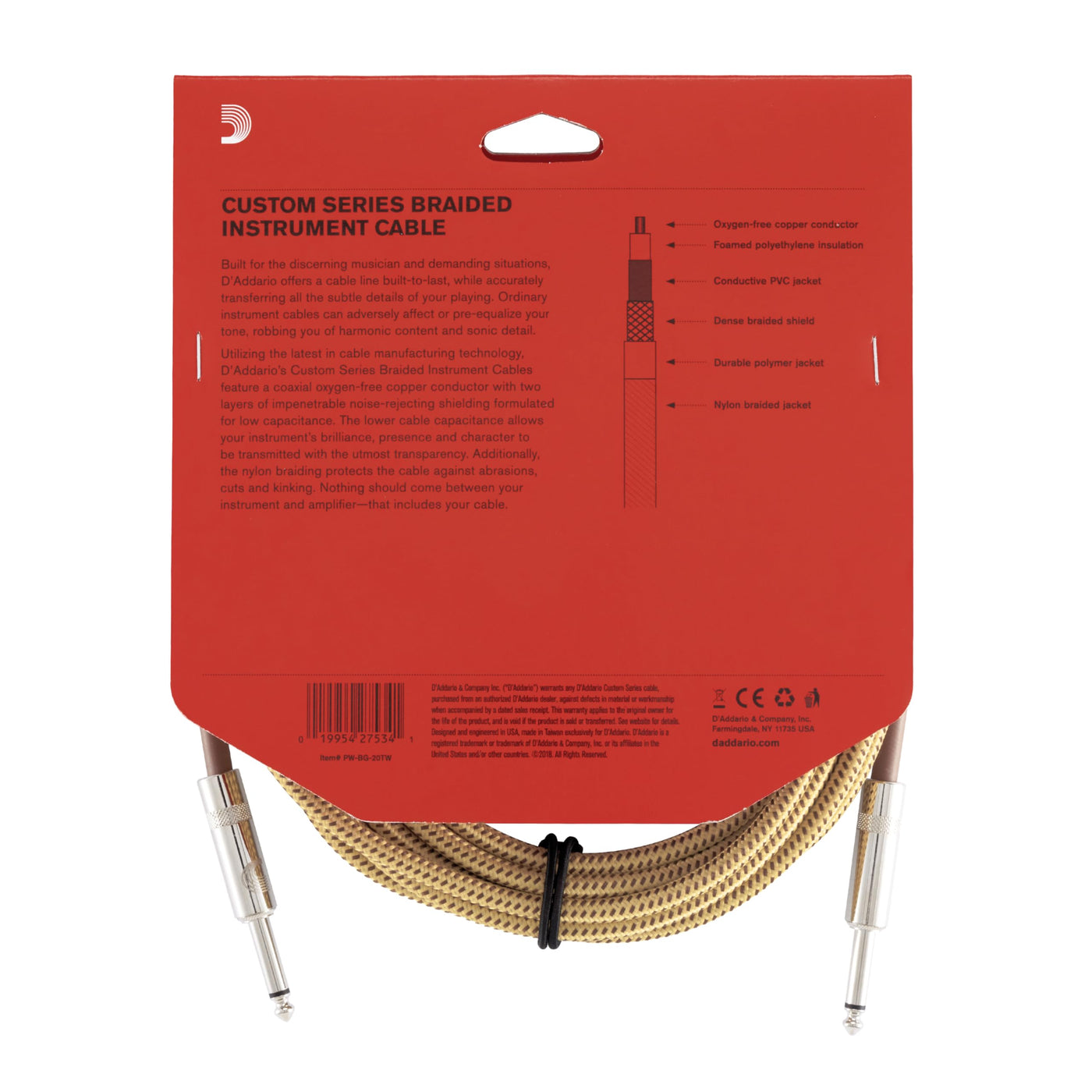 Utilizing The Latest In Cable Manufacturing Technology, D Addarios Custom Series Braided Instrument Cables Feature A Coaxial Oxygen-Free Copper Conductor With Two Layers Of Impenetrable Noise-Rejecting Shielding Formulated For Low Capacitance The Lower Cable Capacitance Allows Your Instrumentas Brilliance, Presence And Character To Be Transmitted With The Utmost Transparency Additionally, The Nylon Braiding Protects The Cable Against Abrasions, Cuts And Kinking Nothing Should Come Between Your Instrument And Amplifier-That Includes Your Cable Available In Black, Grey, And Tweed Designs In Lengths Of 10A, 15A, And 20A