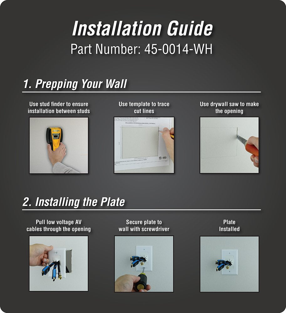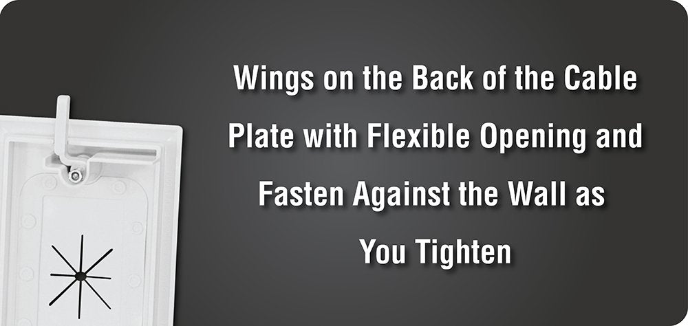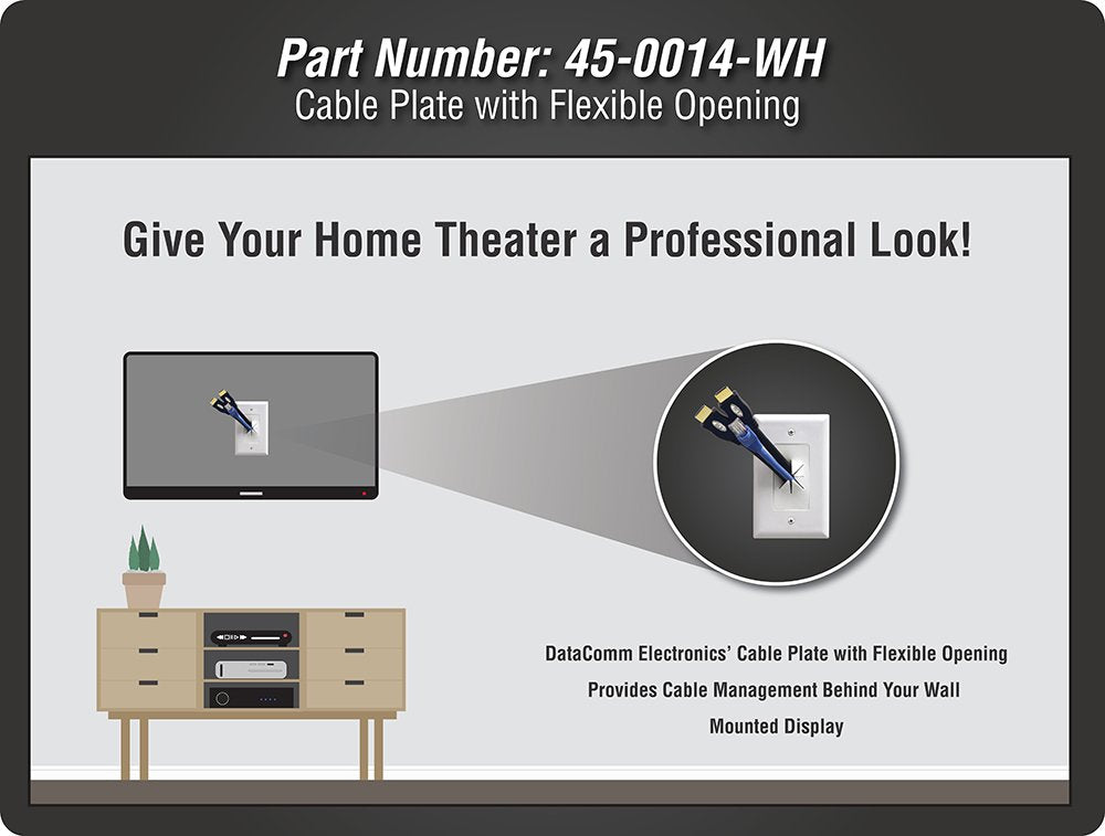 Datacomm Electronics' New, Patented Cable Plate With Flexible Opening Is Used To Install Low Voltage Cables Behind Your Flat Panel Tv, Your Amplifier Or Other Audio Video Devices. This Cable Plate Allows You To Pass Low Voltage Cables Through The Wall, While Keeping The Opening In The Wall Covered.