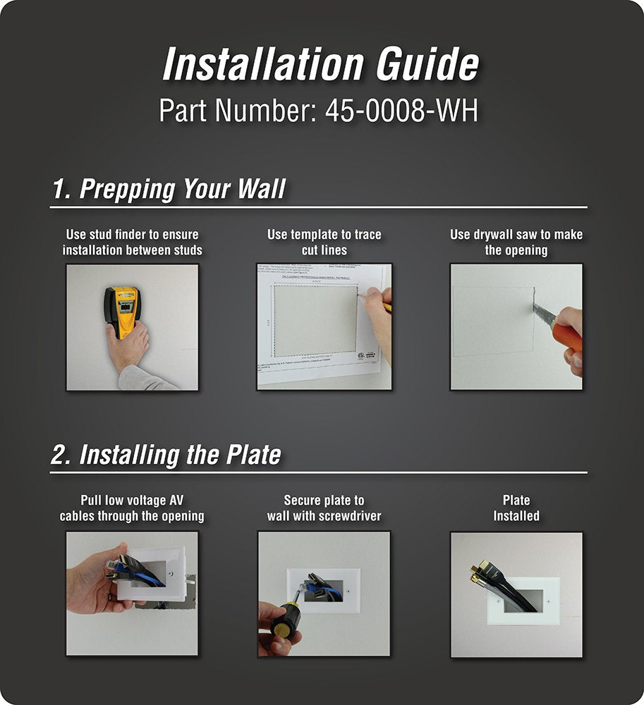 The Easy-Mount Recessed Low-Voltage Cable Plate S Innovative Mounting Wings Eliminate The Need For A Low-Voltage Mounting Bracket. The Mounting Wings Are Molded Into The Easy-Mount Cable Plate And Fasten Tightly Against The Back Of The Drywall. The Dcm450008La Has The Capacity Of A Double Gang Plate-In A Single Gang Profile.