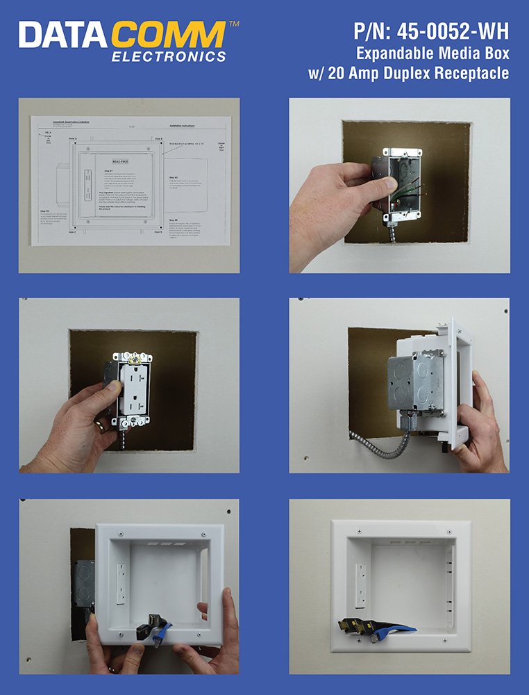 Datacomm Electronics Expandable Media Box With Duplex Surge Receptacle Is Designed To Streamline Power And Cable Management Behind Your Wall Mounted Tv. The Expandable Portion Of The Media Box Allows For Maximum Storage Hidden Behind Your Tv, While Still Allowing Your Tv To Mount Flush Against The Wall.
