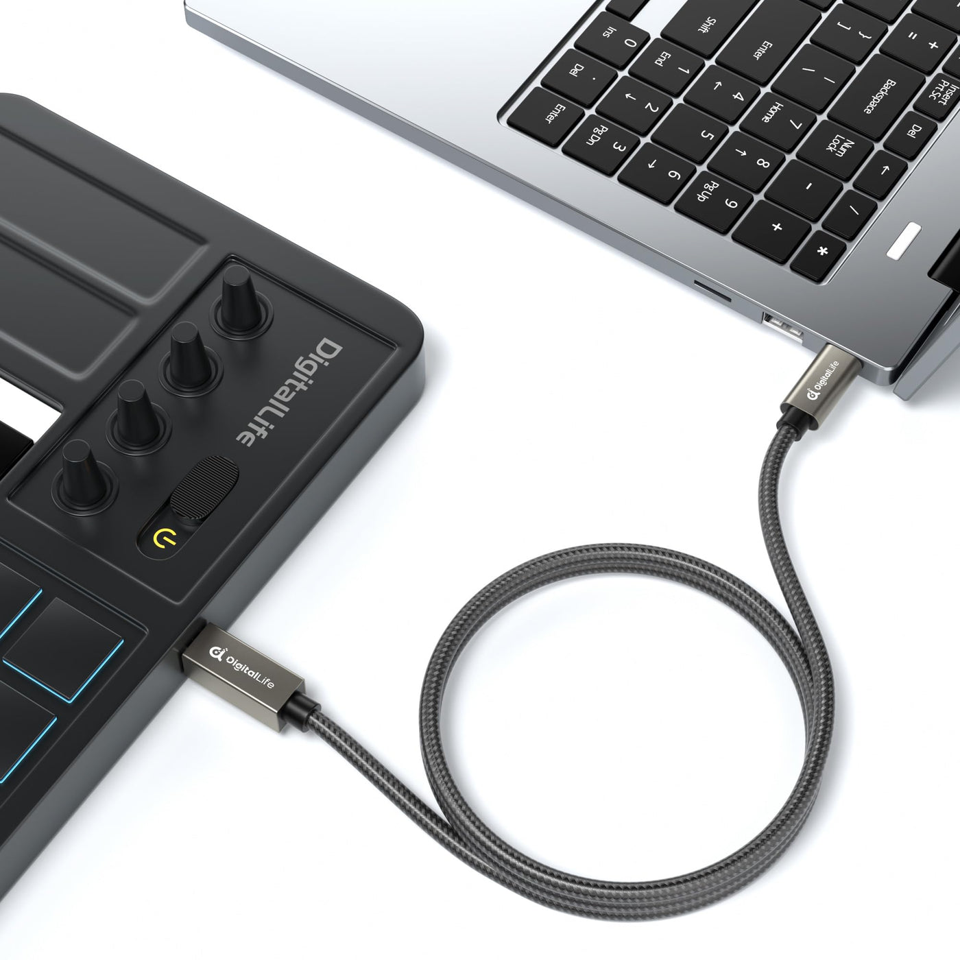 Digitallife 2.0M Usb Type C To B Midi Interface Converter Cable, Compatible With Windows 11 / Macos Sonoma 14 (Metal, Nylon Brai