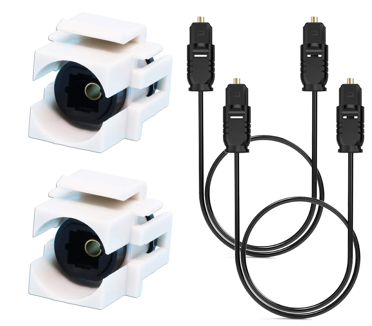 Diytech Toslink Keystone Jack, Female To Female Spdif Coupler, Includes Optical Audio Cable, White (2 Pack)