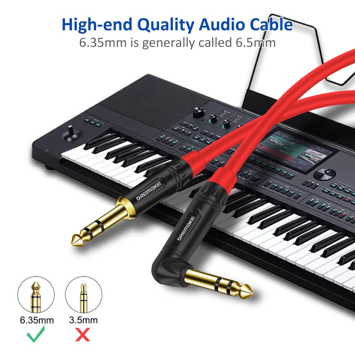 Dremake Jack 6.35Mm Trs 1/4 Inch Straight To Right Angle Instrument Audio Cable Transmit Balanced Trs Audio Signal, Compatible For Stereo Headphone Amp, Studio Monitors, Bass, Mandolin, Keyboard, Ukulele, Pedal Board, Audio Interface, Widely Used In The Installation Of Smart Home, Speaker System, Recording Arrangements, Band Rehearsals, Professional Stage Audio, Etc Feature: - 24K Gold Plated L-Sharped Connectors Resist Corrosion And Ensures Pure Sound Quality - Durable Metal Shell Protects For The Connector To Effectively Reduce Signal Attenuation - High Coverage Of Oxygen Free Copper (Ofc) Provides Noise-Free And Precise Signal Transmission - Inside Aluminum Foil Shielding Layers, Braided Layers And Filling With Tensile Cotton To Reduce Interference, Fidelity Effect Better Than Normal Cable - Cable Outer Diameter: 6.0Mm - Cable Length: 3Ft/1.0M Package Content: 1 X Dremake 6.35Mm 1/4 Inch Straight To Right Angle Guitar Interconnect Cable