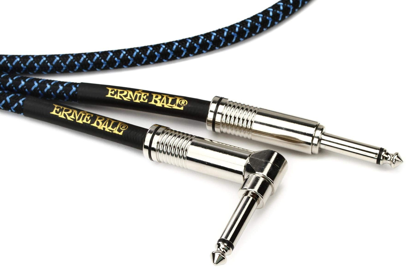 Ernie Ball Braided Instrument Cable, Straight/Angle, 25Ft, Blue/Black (P06060)