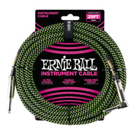 Ernie Ball Braided Instrument Cable, Straight/Angle, 25Ft, Neon Green/Black (P06066)