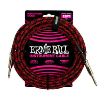 Ernie Ball Braided Instrument Cable, Straight Straight, 25Ft, Redblack