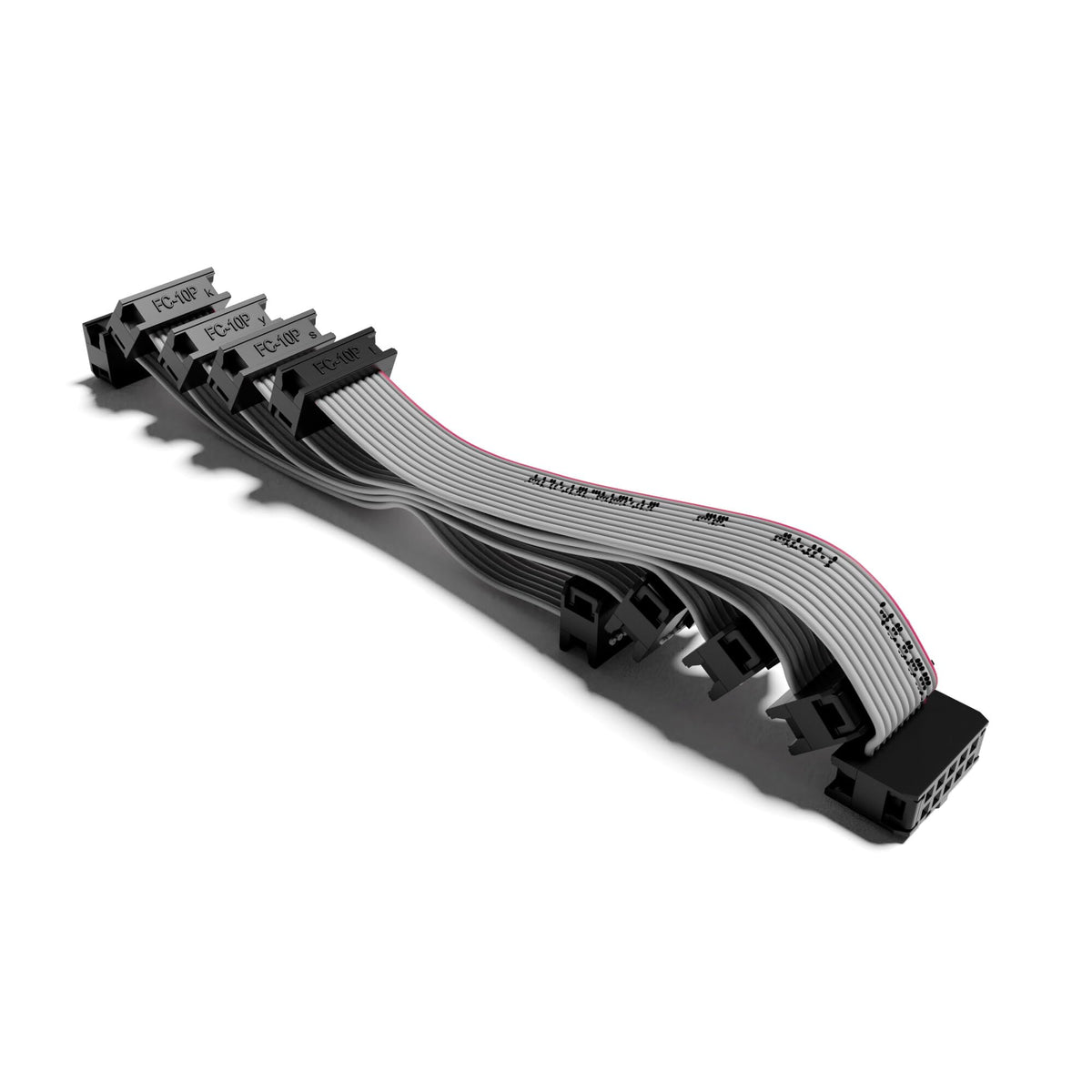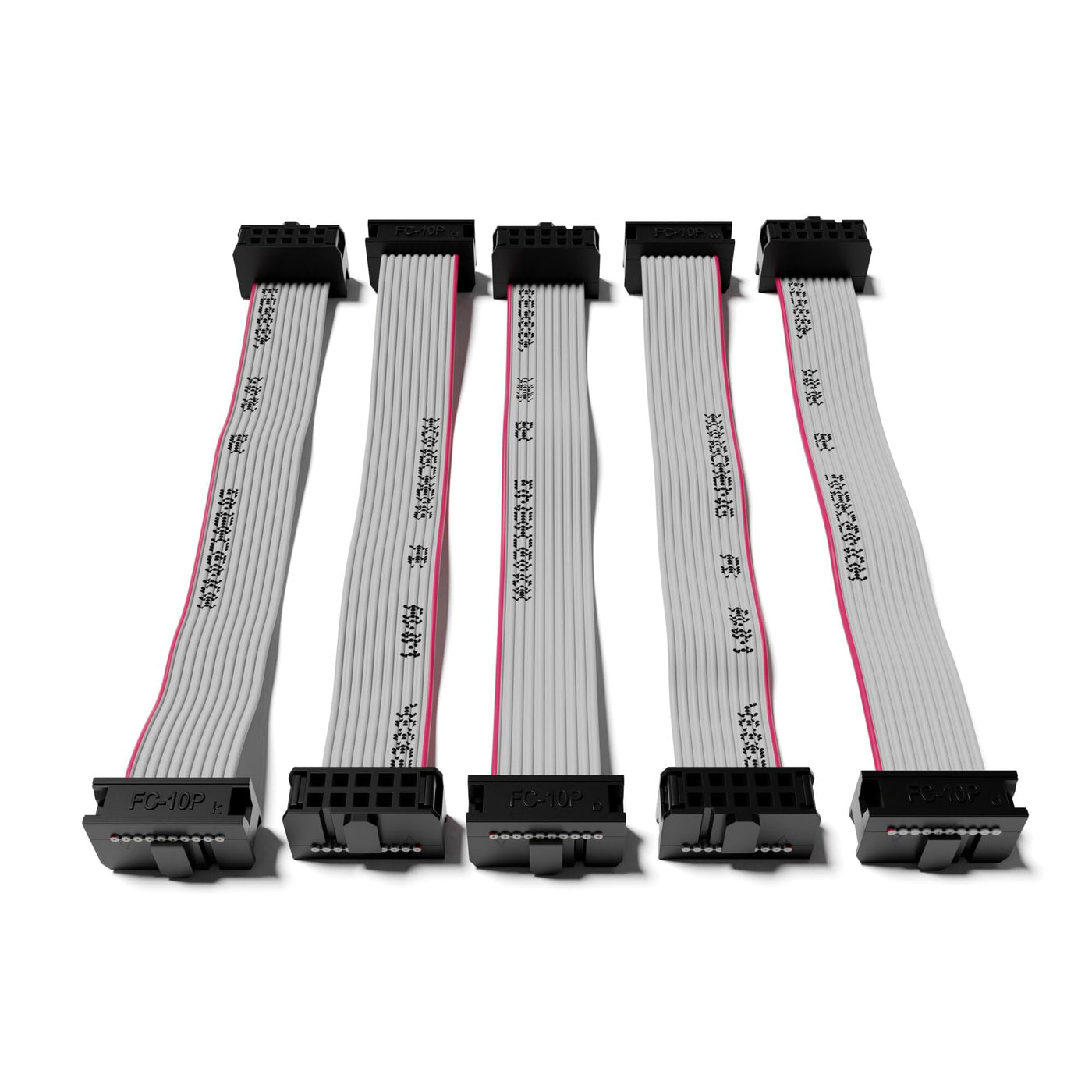 Q: How many cables are included in a pack and what colors do they come in?A: Each pack includes 5 high-quality flat ribbon power cables. The cables are gray, while the connectors are black.