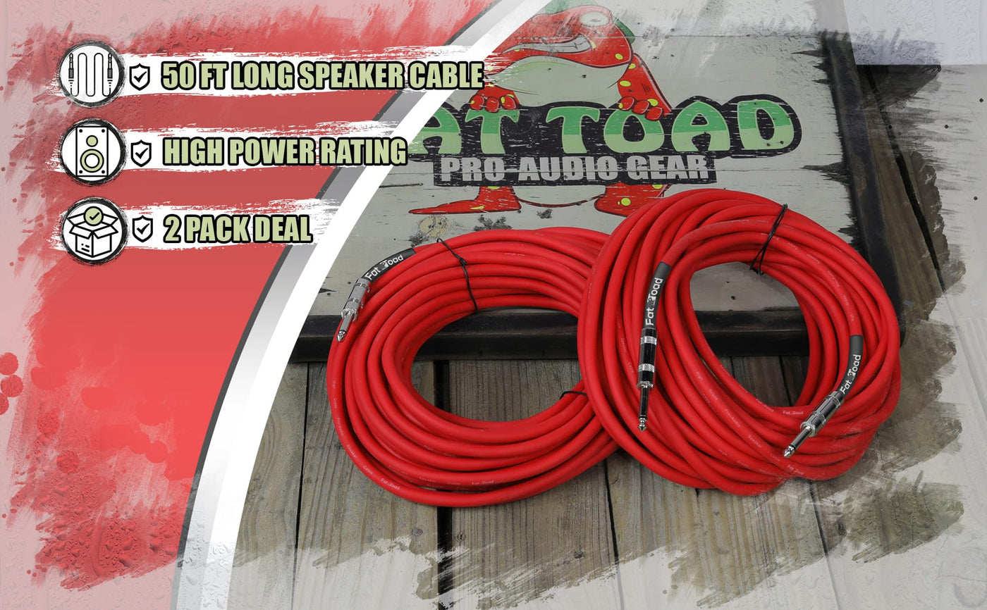 Fat Toad 1/4'' To 1/4 Male Jack Speaker Cables (2 Pack) 50Ft Professional Pro Audio Red Dj Speakers Pa Patch Cords | Quarter Inc
